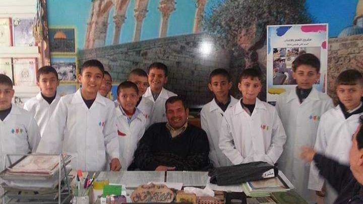 This is my brother Awad standing in front of a school that was completely destroyed by the occupation. Children have lost their future since childhood.