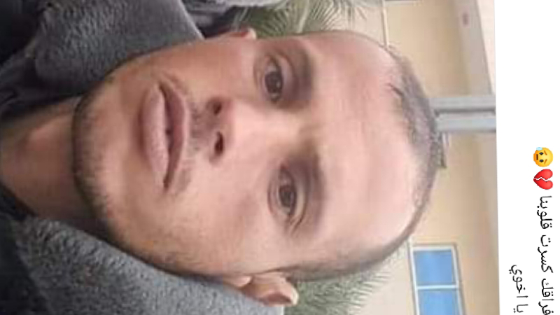 This is Muhammad Al-Nahhal, my cousin, who was martyred in the massacre. He was waiting for the war to end so he could travel to fix his future, but unfortunately he died before achieving his dream