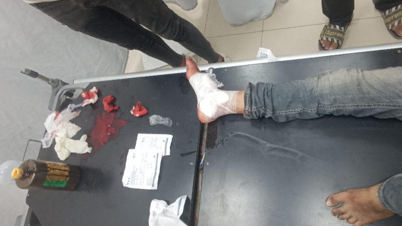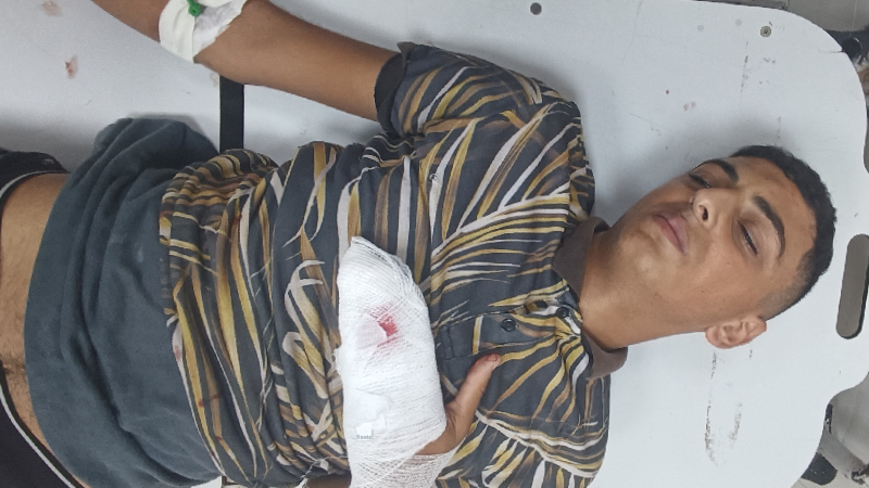This is my brother Mohammed, 17 years old, he was injured in his leg and hand and lost a finger