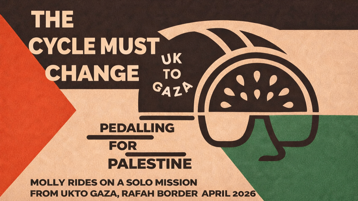 I'm Molly/Mols I'm 32 and in April 2026 I am venturing on a solo, self supported, cycling backpack mission from the UK to Gaza to raise money for 3 charities that operate in Gaza.