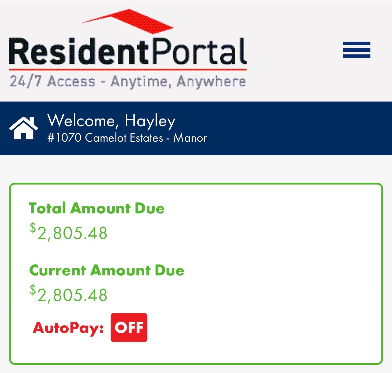 • Lot rent for October, November, and December