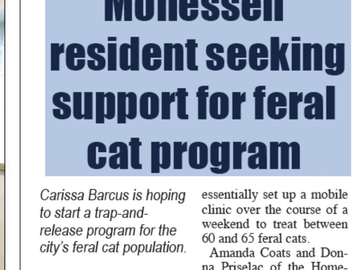 Please support the Monessen tnr (Trap, neuter, release) project.