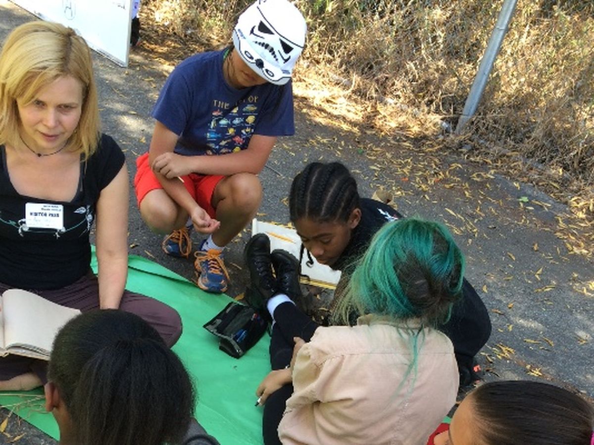 A mural to be painted on the 7' X 44' space that would be the size of the wall outside the art classroom called "The Bamboo Corridor." The mural will mirror the vegitation/bamboo and architecture of the school and will be executed using a combination of green tones and ombre color palettes, done in a similar style to the Abrams Claghorn Gallery Mural. The artful color and playful composition of the mural will provide students a space to creatively reflect on the unique beauty their environment. I will design and paint the majority of the mural and students will be invited to observe, ask questions and possibly participate as the mural is being painted. As an artist/educator I believe it is important to give students the opportunity to be engaged with the creative process of professional artists.