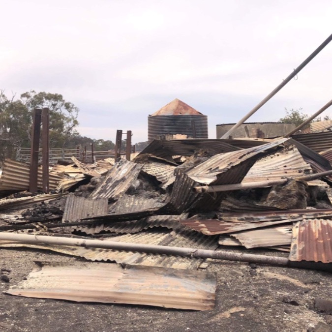 Fruit trees have been decimated, as well as, water lines to cattle troughs and part of the stockyards. The hay-sheds have both been destroyed, costing over $50 000 to rebuild, with at least $50 000 of hay lost during the fire. Whilst