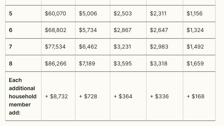 Here are the income thresholds mentioned above: