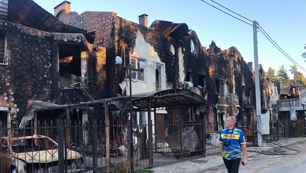 Russian forces advanced on the Kyiv suburb of Hostomel and its airport, bringing unspeakable horror on the town and its residents; intercepted phone conversations between Russian soldiers called this ‘zachistka’ - cleansing. The battle for Hostomel Airport was the first major battle of the war; the town was given the title Hero City of Ukraine.