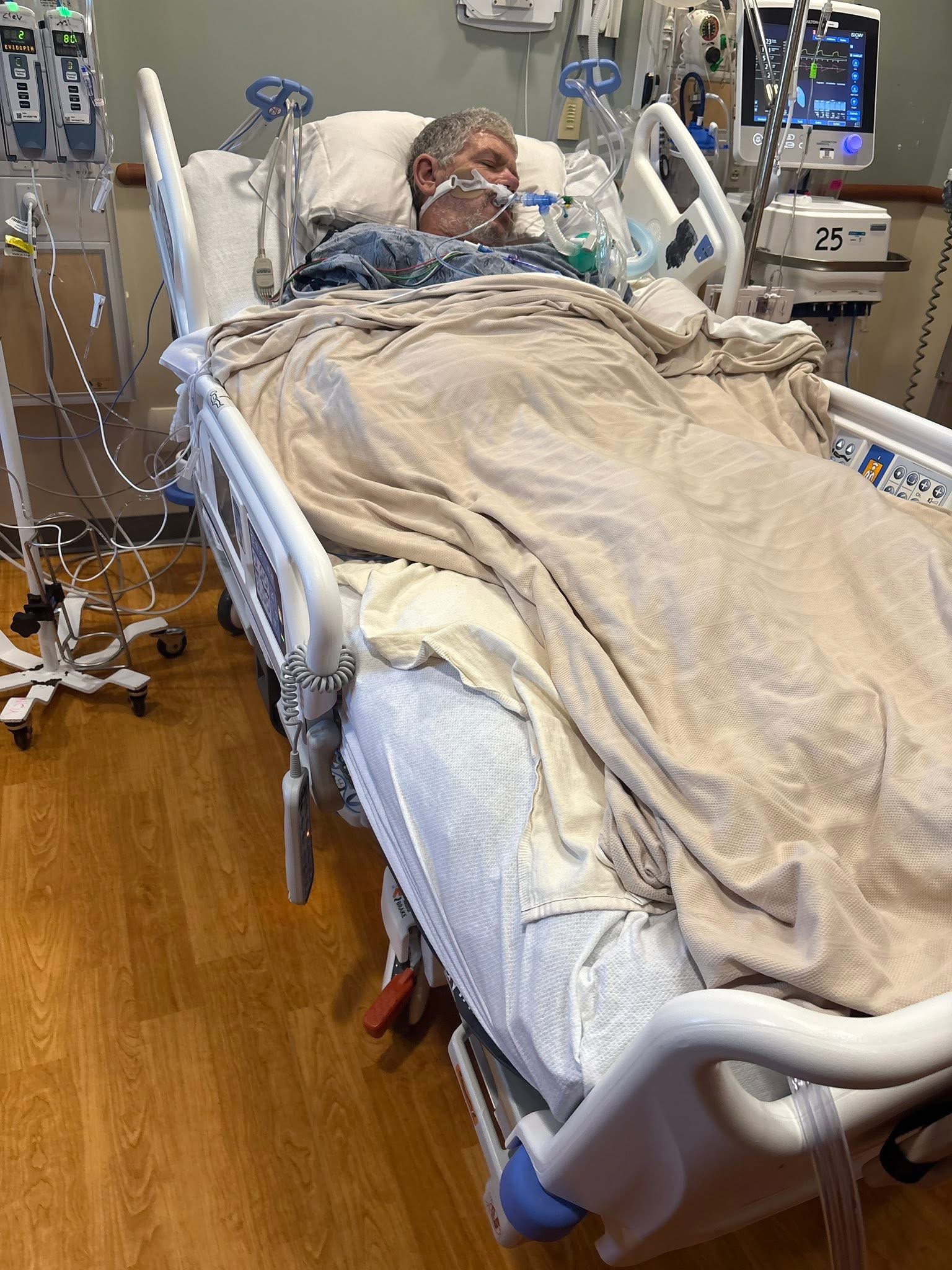 Hi everyone, this is my husband Joe who was found unresponsive in his work truck on Sunday. He was admitted to the hospital with a brain bleed and stroke on the left side of his brain, which has affected his right side with very little movement.