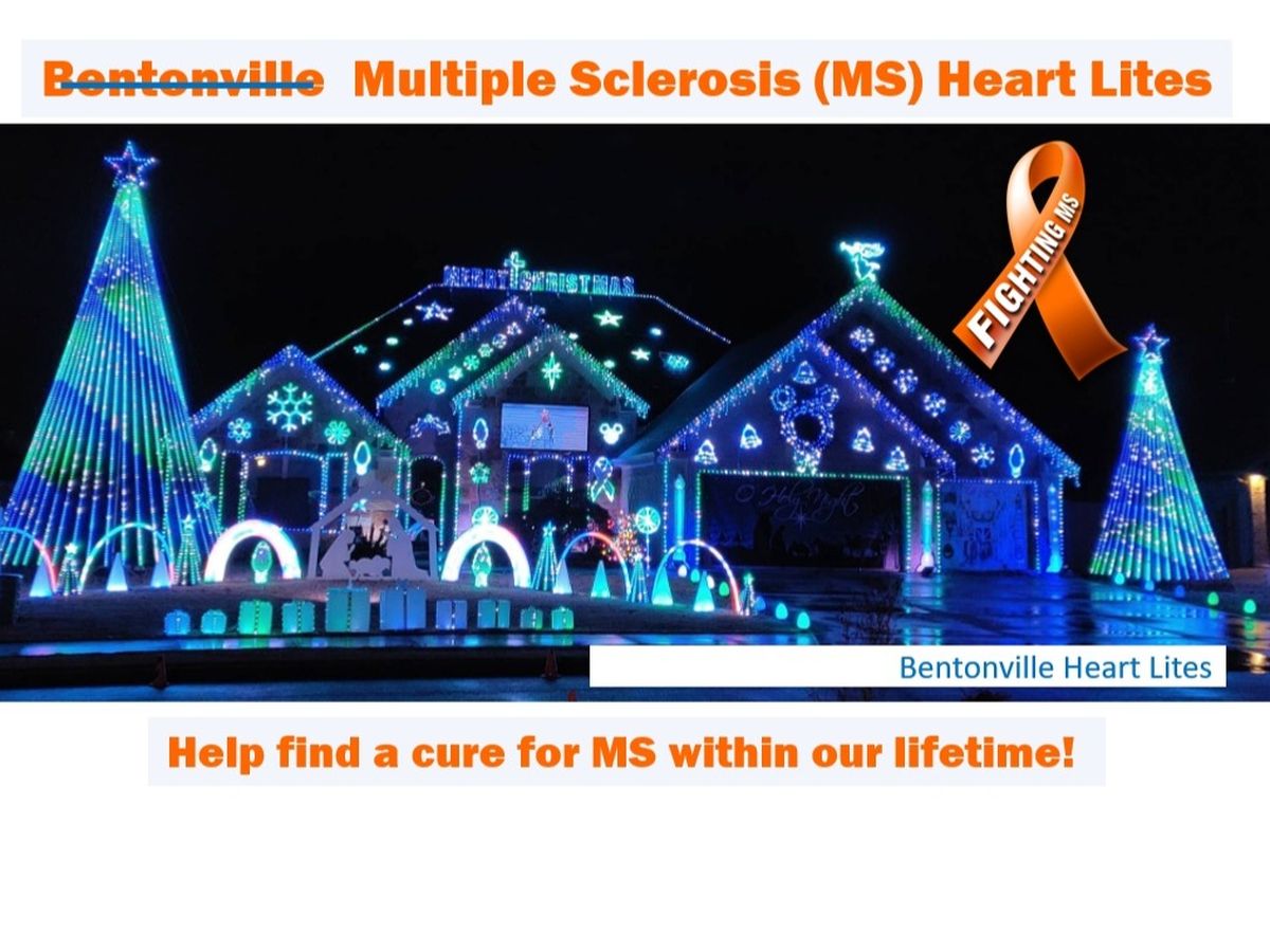 Bentonville Heart Lites animated Christmas Display is in its fifth year this year. As support in the community grows for the display, we want to have a wider impact outside of our display. This year we are asking for donations to benefit Multiple Sclerosis (MS) Research. We have close friends with kids who have MS as well as adult friends with MS. MS is currently a life-long condition with people often living 40 to 50 years with the disabling symptoms. While research has led to improved treatments, there is no cure. Any donation will help.