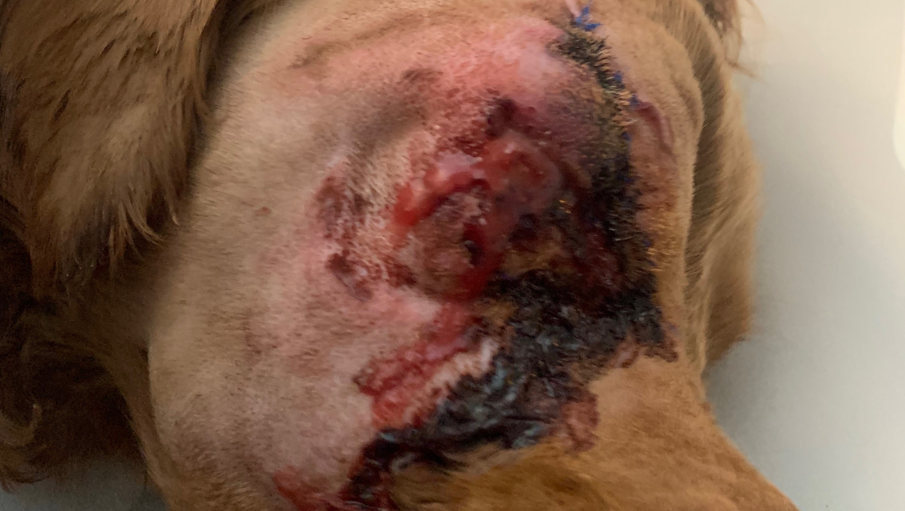 The day before Easter all of our lives changed for the worst, as we went for a walk and out to play. Moments before leaving horror breaks out. Coda was playing ball with his family and got close to a fence where a bigger dog resided, little did we know the fence had a gap at the bottom, unfortunately,the size of codas head. In an instant the reactive dog three times the size of coda got a hold of codas face and began tugging at him trying to get him through the fence Codas mom and dad fought as much as they could through the only space they could to get the other dog to release him. In shock and unsure what the outcome would be, If he would live, still have his eye or vision they wrapped Coda up and rushed him to the nearest emergency vet they could find.