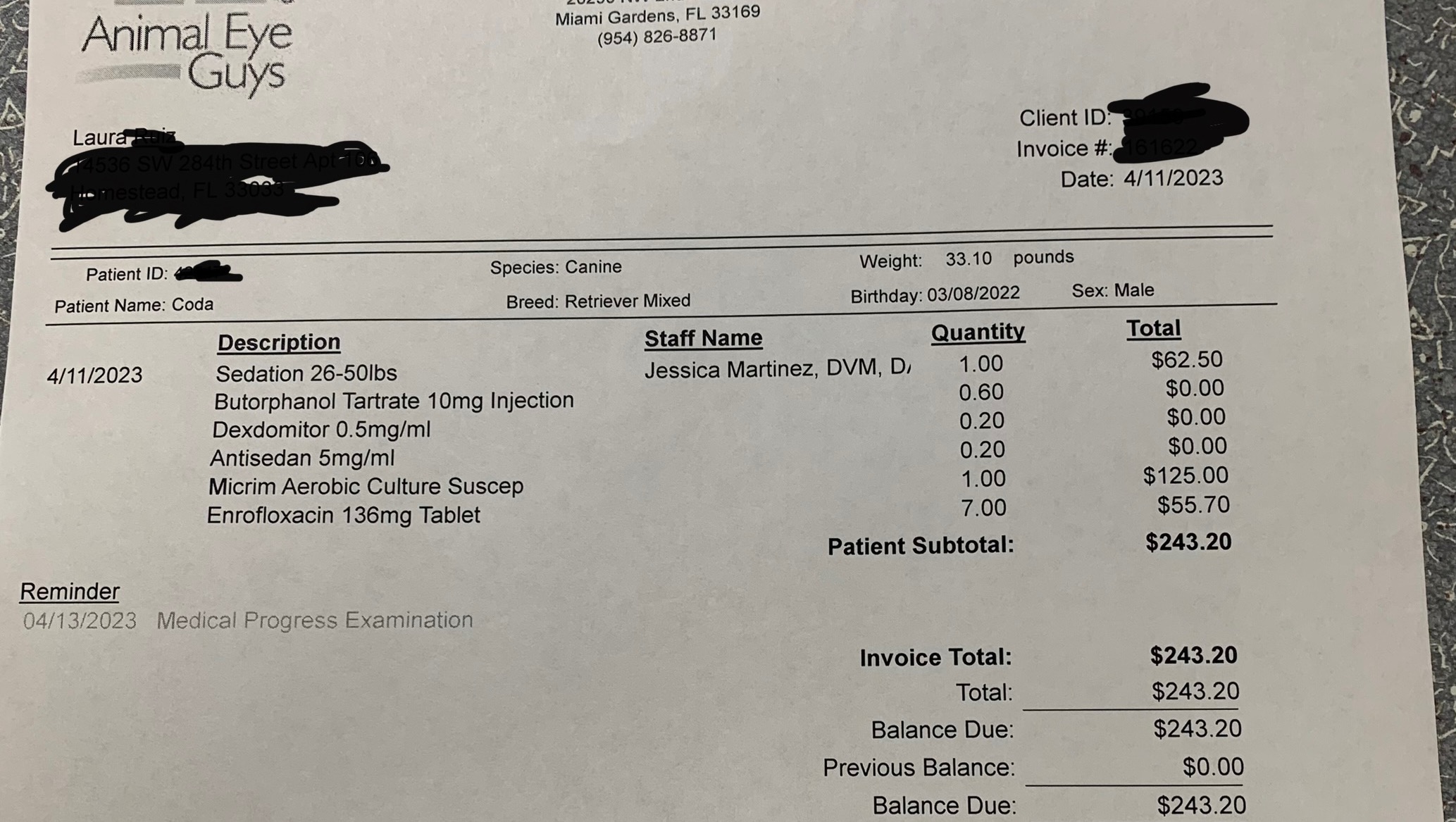 Second stop: Thank God for Animal Eye Guys of Miami Gardens, and their incredible staff.
