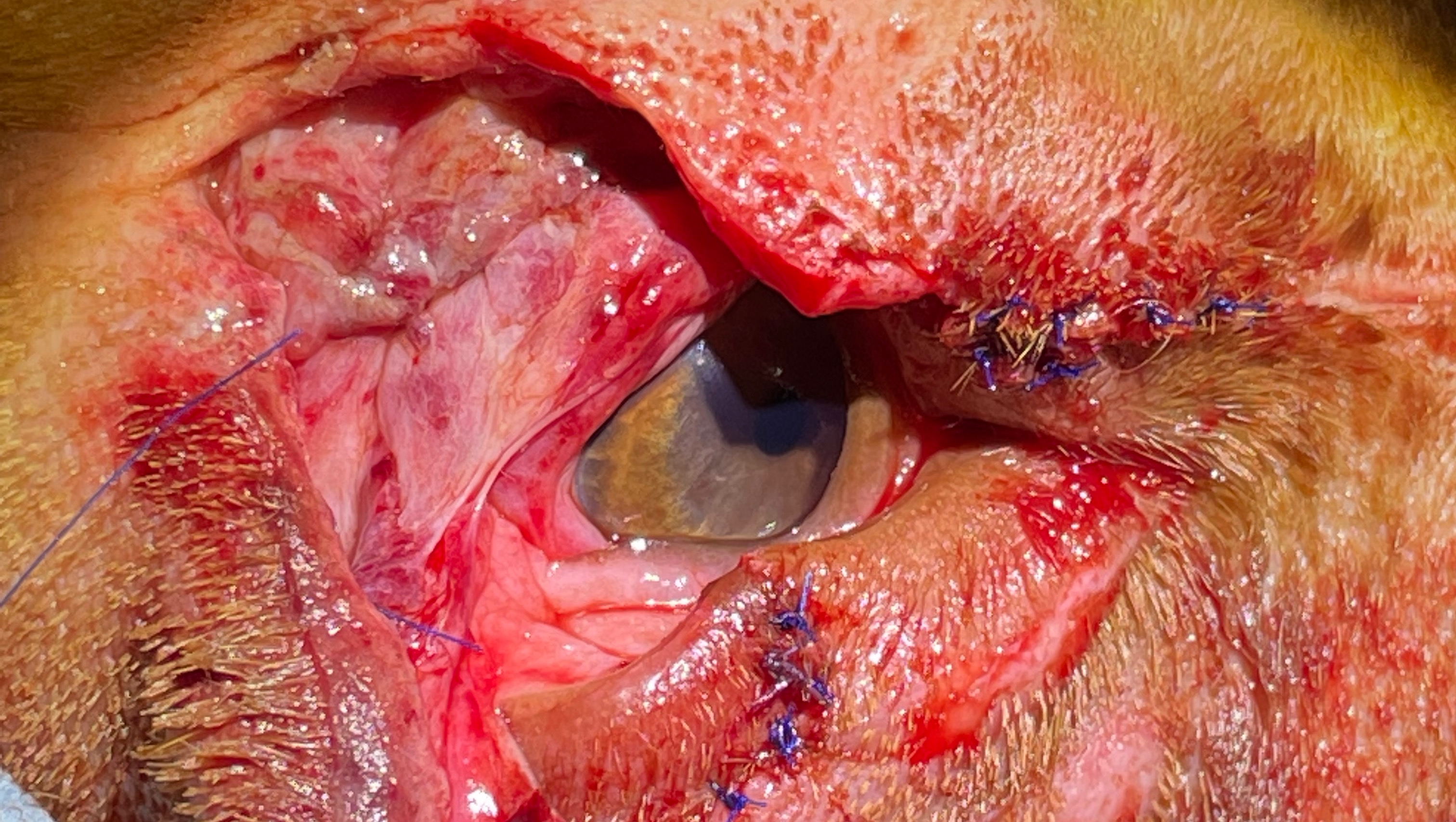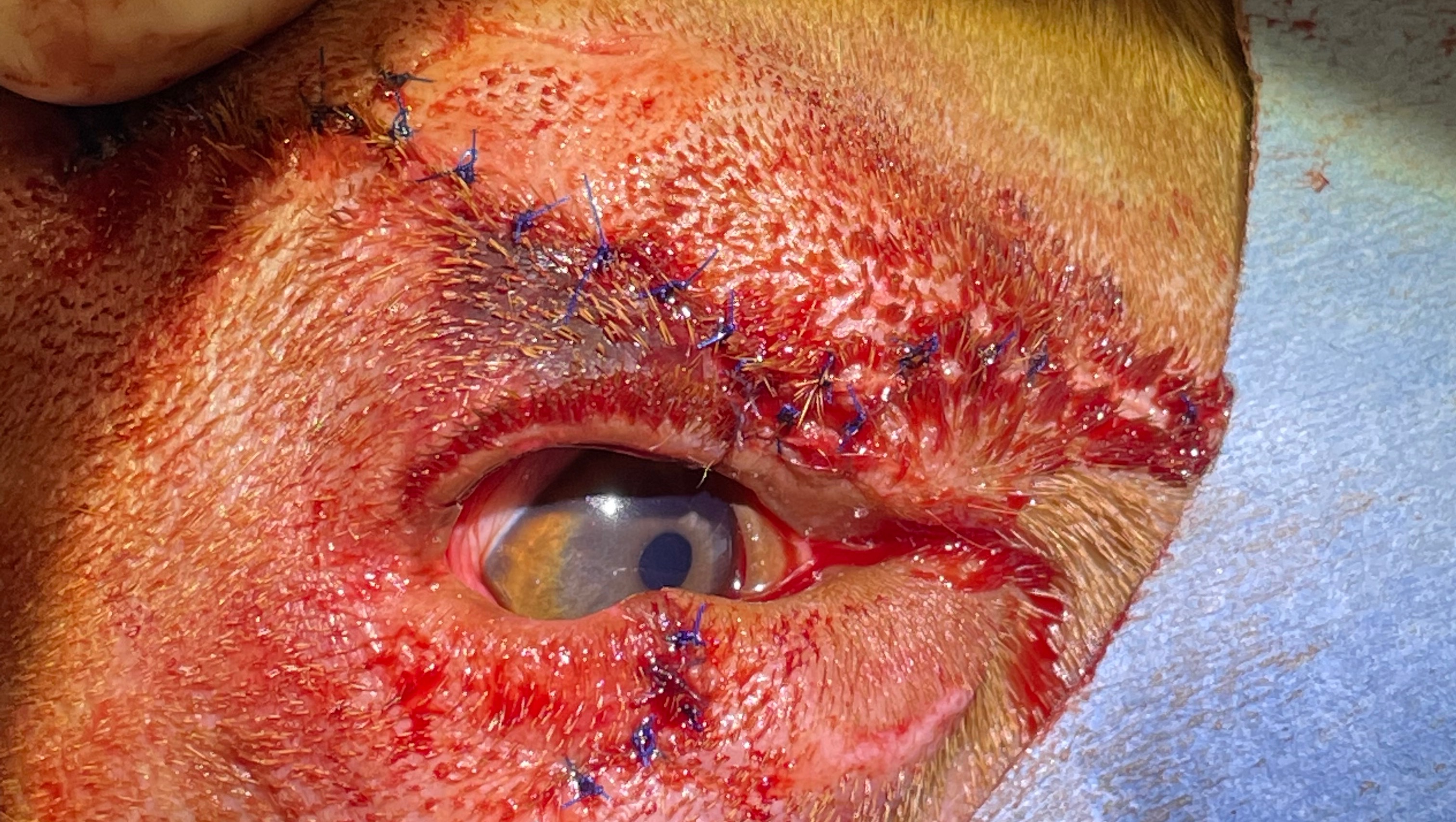 Miami Veterinary Specialist was our first stop where the Dr. was worried about damage around the Muscles, Nerve damage, along with the severity of the lacerations they referred us to the ophthalmologist for further reconstruction.
