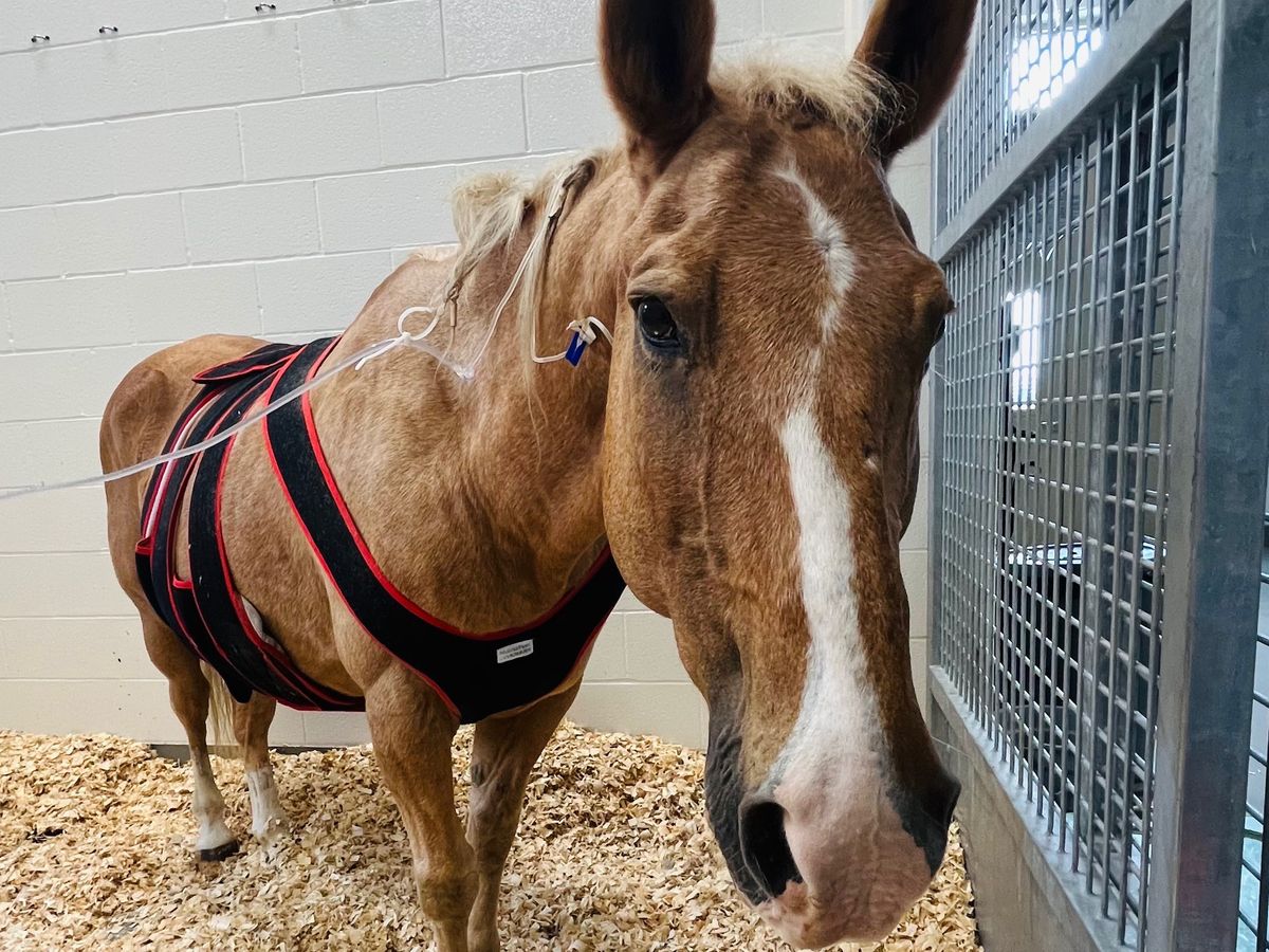 Hi, I’m Stephanie and I have a horse named Mustard. You may have already known that as I tend to post a lot of photos on Facebook. Mustard is 25 years old and I have been grateful to have him in my life for the past 14 years. He has taught me so much over the years and he is my best friend. We have shared countless adventures together. As you may be aware Mustard had an emergency on Monday August 22, 2022. He was suffering from colic which is every horse owners worst fear. His veterinarian came out right away and gave him pain medication and IV fluids; however, he was still in terrible pain. I immediately hauled him up to Purdue and he was diagnosed with a strangulating lipoma; meaning, a slow growing non cancerous fatty tumor had wrapped around his small intestine and his small intestine was being strangled. The only chance at trying to save Mustard was to have major abdominal surgery to remove the affected area of intestine. Mustard’s first surgery took 5 hours and he had a four foot section of his small intestine removed. He initially did well post operatively but less than 12 hours later he started showing signs of colic again and required a second emergency surgery. Mustard’s second surgery lasted close to another 5 hours and he lost another 6 feet of small intestine due to a stricture near the previous surgical site. On Wednesday he had to have a plasma transfusion because he had low protein levels. Mustard is still hospitalized at Purdue and he is still receiving IV fluids and several other IV medications. As of Thursday he is stable and showing signs of improvement. He was started on small amounts of food but later in the evening he started to have reflux and has had to have a tube placed through his nose and into his stomach to remove excess fluid from his stomach. Mustard’s veterinarian has estimated that he will be hospitalized for at least a week at Purdue depending on how he is doing each day. He is still not fully out of the woods just yet, but he is a strong guy and and he has a lot of people sending prayers and good thoughts his way.
