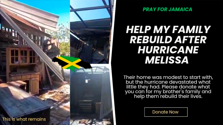 Today, that life has been shattered. Hurricane Melissa has completely devastated his home. His roof is gone. His furniture, appliances, and most of his possessions have been destroyed. He and his partner are now struggling to care for their three children — including a 10-month-old baby boy — with no shelter, food, or clean water.