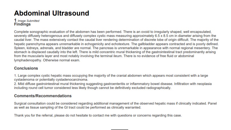 He needs an CT scan before surgery can be considered. I'm looking to get it removed or reduced before he gets older, weaker and causes him any issues. I want him to live his life to the fullest. The cyst is pushing on his organs and is a large, hard mass.