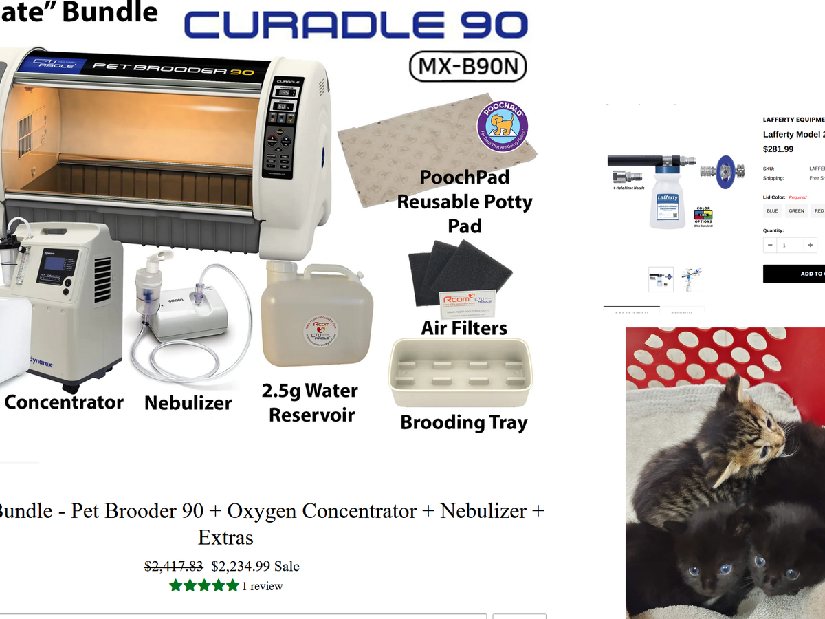 That's why I'm on a mission to equip my foster sanctuary with essential tools: an incubator that regulates humidity called Curadle 90 it helps to provide perfect temperature environment, a oxygen concentrator that connects to the incubator for respiratory support, a nebulizer that connects to the incubator that helps the congested babies breather and a specialized cleaning tool that will ease my cleaning process to maintain a sterile environment between litters.