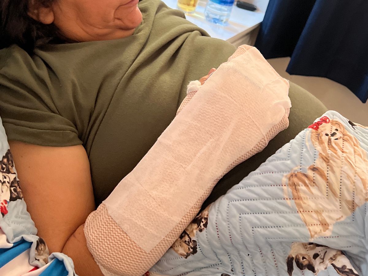 accident here at home. Last Wednesday she was prepping food for the business she is starting up and while in the process, severely injures her hand. Got taken to the hospital and the amount of time between her injury and getting scene, she lost so much blood that her heart stopped and needed to needed to be shocked to be brought back. Doc’s said she is out of commission for 3 months.