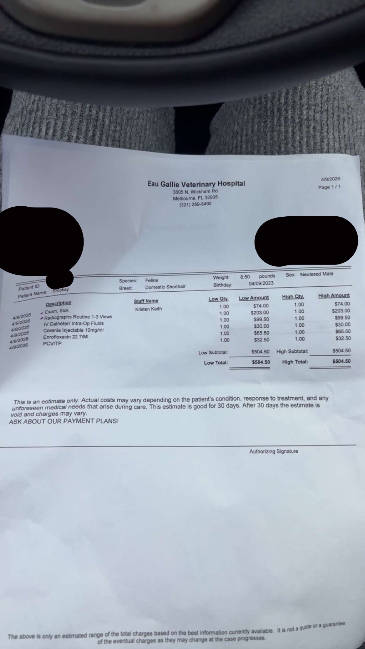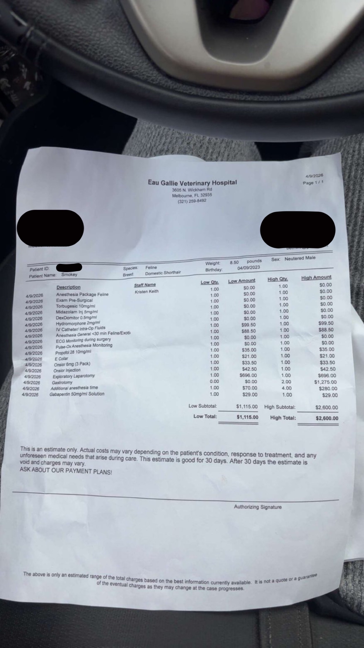 Hello, my name is Aiden, and my girlfriend Bailey and I have our cat Smokey. We took him to a pet hospital today after constant throwing up and decided to take blood work to see what was wrong. The blood work came back healthy, so we then went to a cheaper vet for X-rays for foreign body objects. We found out he has tons of abnormal gas patterns, leading to the fact that he has foreign body objects in his abdominal area. This requires surgery, and trust us when we say this surgery is NOT cheap. On the low end of things, we're looking at paying anywhere from $1,500 to $3,500 total. We love this cat with everything we have and really hope we can pull through with this money so that we can keep him and hopefully get this taken care of. Any help of any kind is GREATLY appreciated. Thank you and have a blessed day!