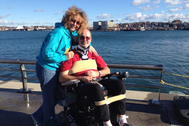 It is unknown how much more function will return, but exercise and training will give Greg the ability to do a fair amount. They are on a journey of years that will require continuous adaptions. Today they are at Spaulding Rehabilitation Hospital with some of the finest doctors and therapists around. Greg works with the occupational therapist on using his left arm/wrist/hand to begin to learn how to raise his hand to his mouth for the ability to learn to eat, brush teeth, etc. He works with the physical therapist on driving a powered wheel chair and exercises to become stronger.