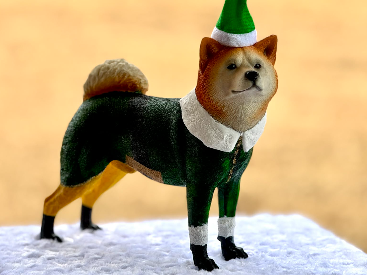 Nakama the Elf-Kita hopped onto the shelf one snowy night, determined to be the most loyal little holiday helper ever to his creator Diane Merits in support of Georgia Akita Rescue Division.