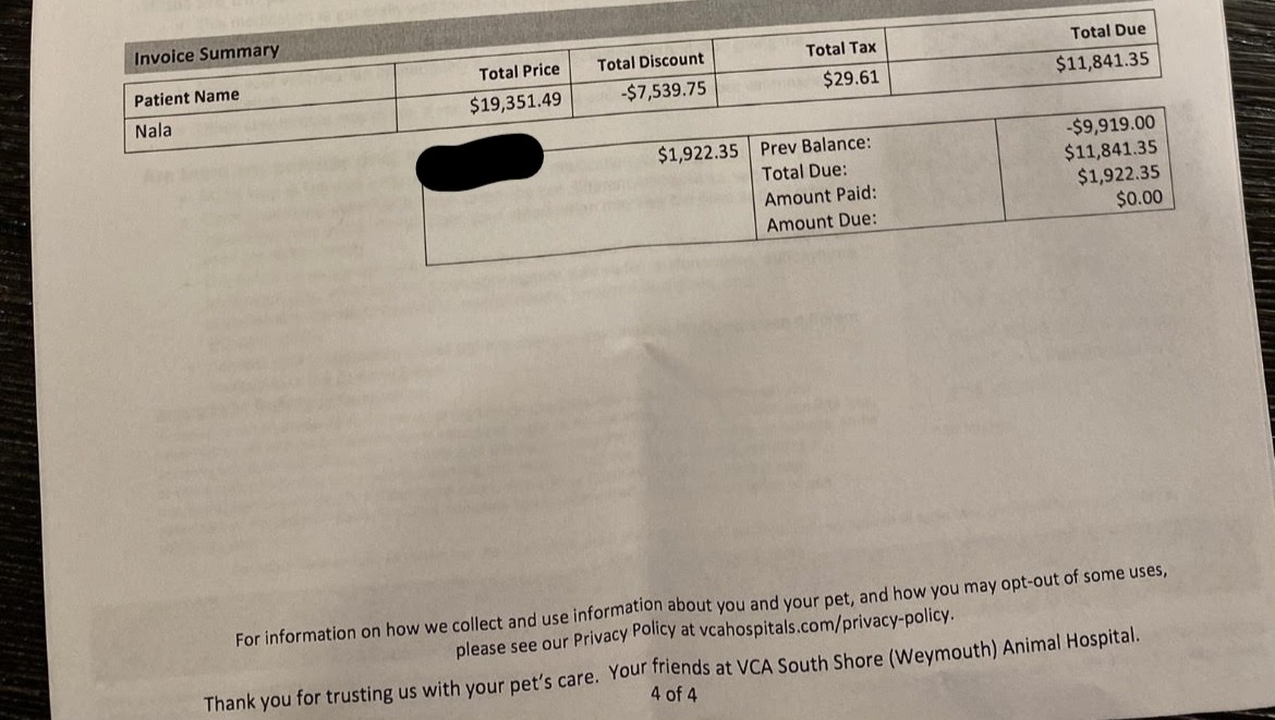 Nala's VCA Surgery Costs After Car Accident