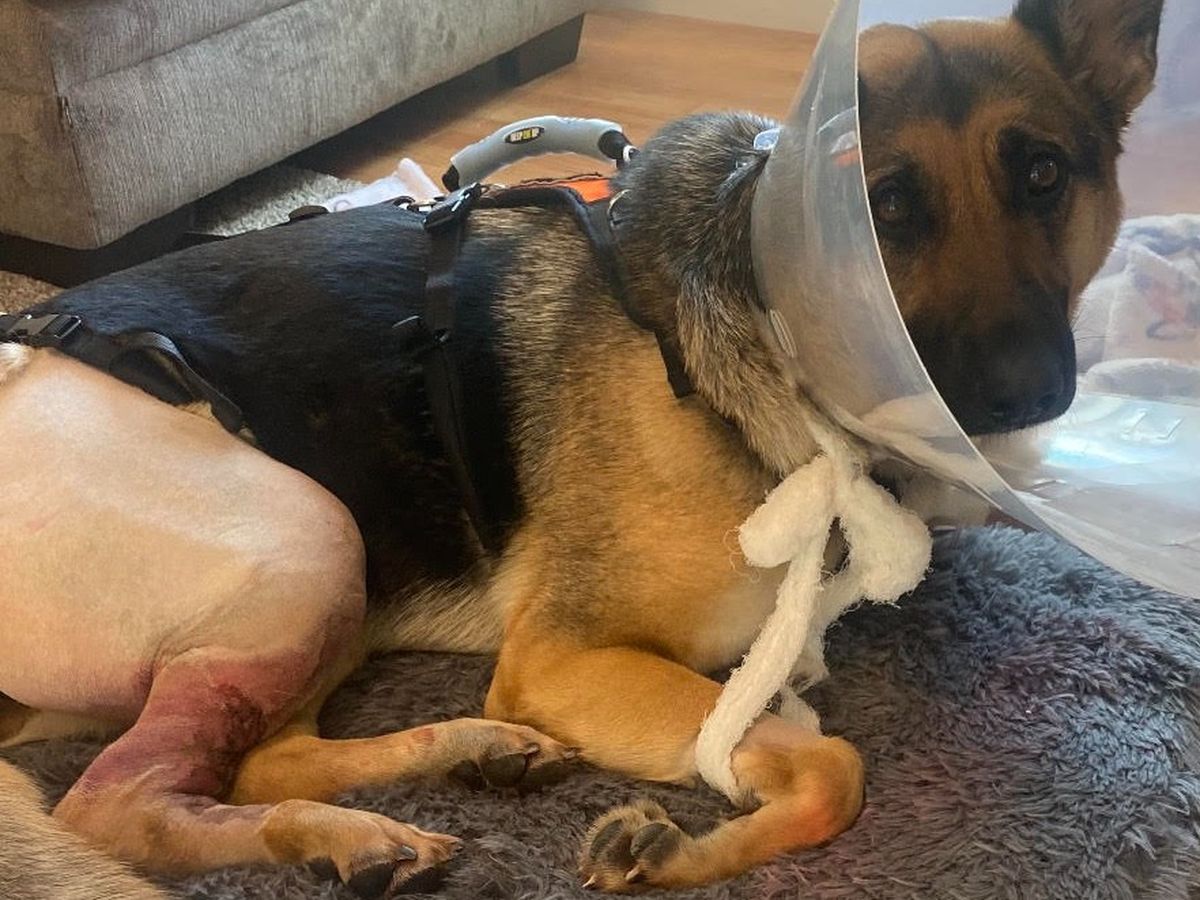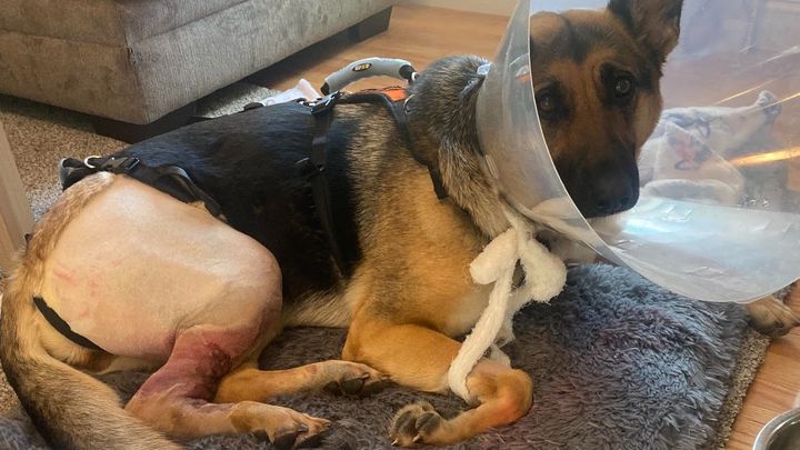 She is now at home recovering but needs 24/7 care because she cannot stand on her own and needs help with everything. Nala is in a harness that must be held anytime she needs to move for everyday needs as small as using the bathroom. Thankfully, the doctors expect a full recovery because she is young and healthy but it will be weeks before Nala will not need to remain supervised and aided around the clock.