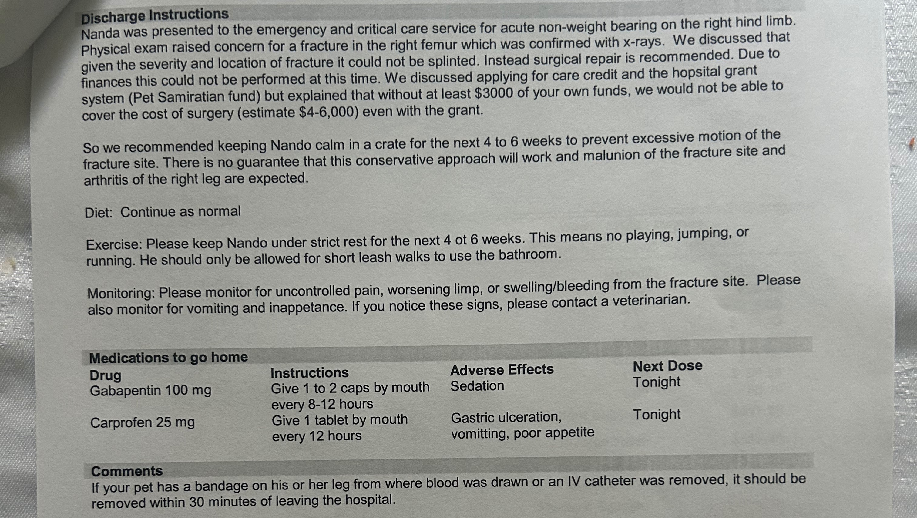 Hi everyone! Our names are Aaliyah and Ja’Quim! We’ve made the decision to create this GoFundMe for our fur baby Nando! Our little clumsy guy had a terrible fall down our apartment stairs, leading to a fracture in his right femur. We’re unable to afford his surgery of $6,000 and are asking if you’re willing to help us provide the care our baby deserves. Whether you decide to donate or share our link, we greatly appreciate it.
