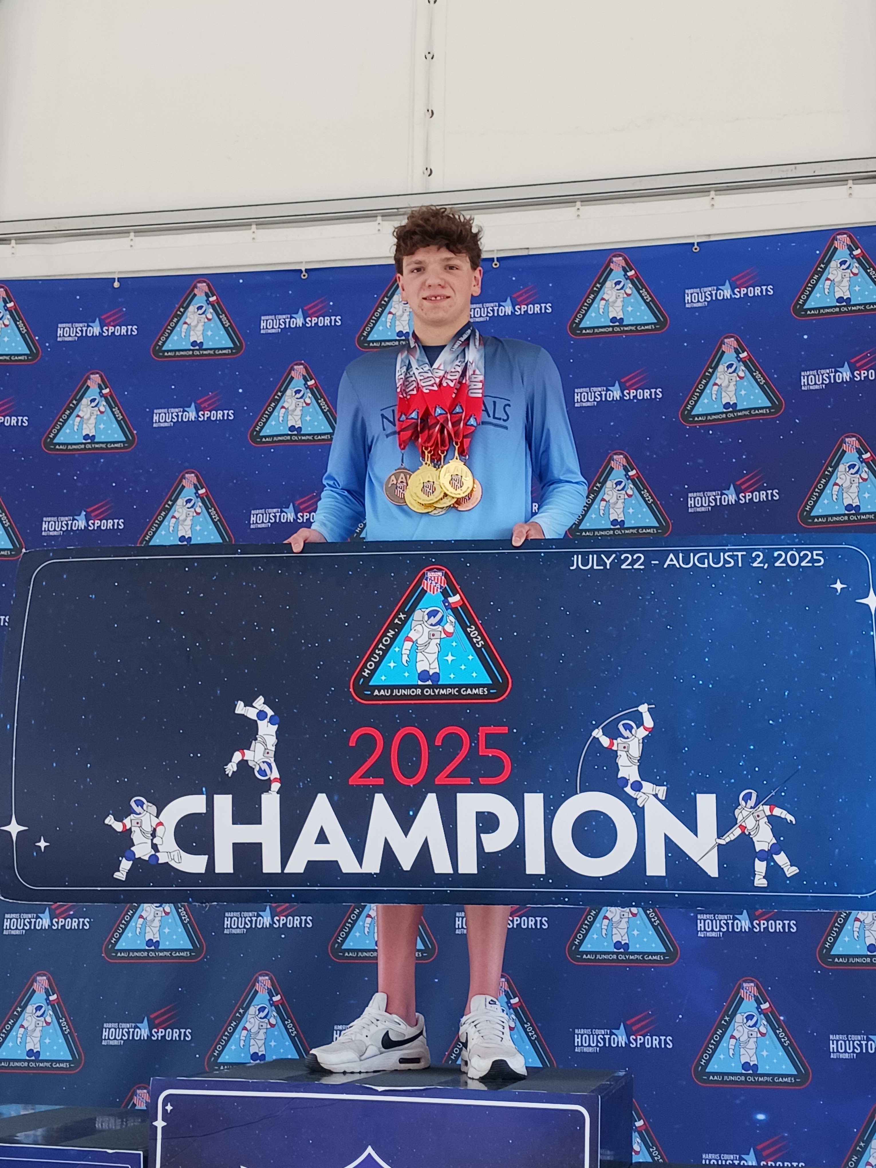 He has competed in the AAU Junior Olympics since 2021. He now holds the record in 5 events as a 13 year old and 4 events as a 14 year old. In 2025, he won 5 gold medals, 2 silver medals, 1 Bronze medal and 1 5th place medal.
