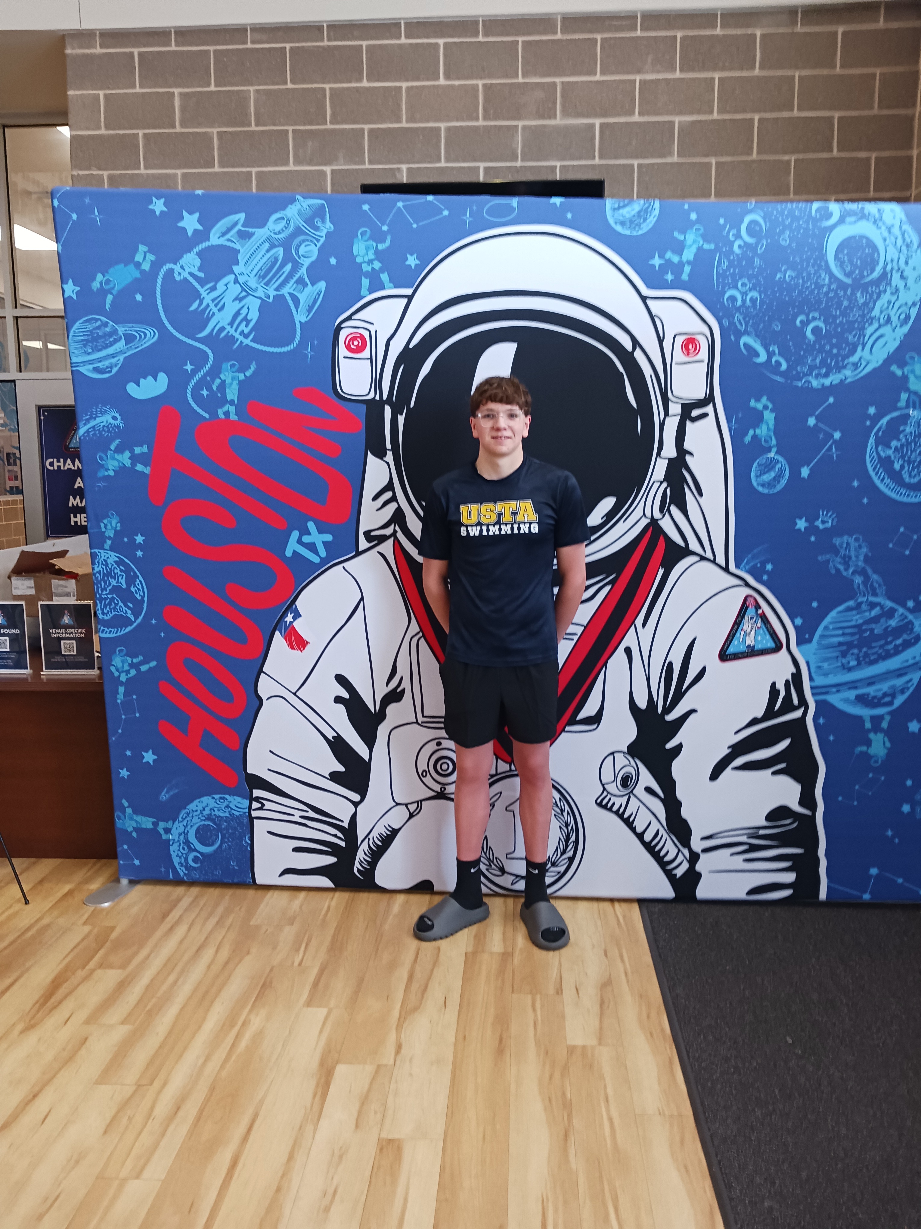 His goal is to continue swimming and training for both short course yards events and long course meters events. He would like to swim in college and possibly one day make the USA Olympic swim team.