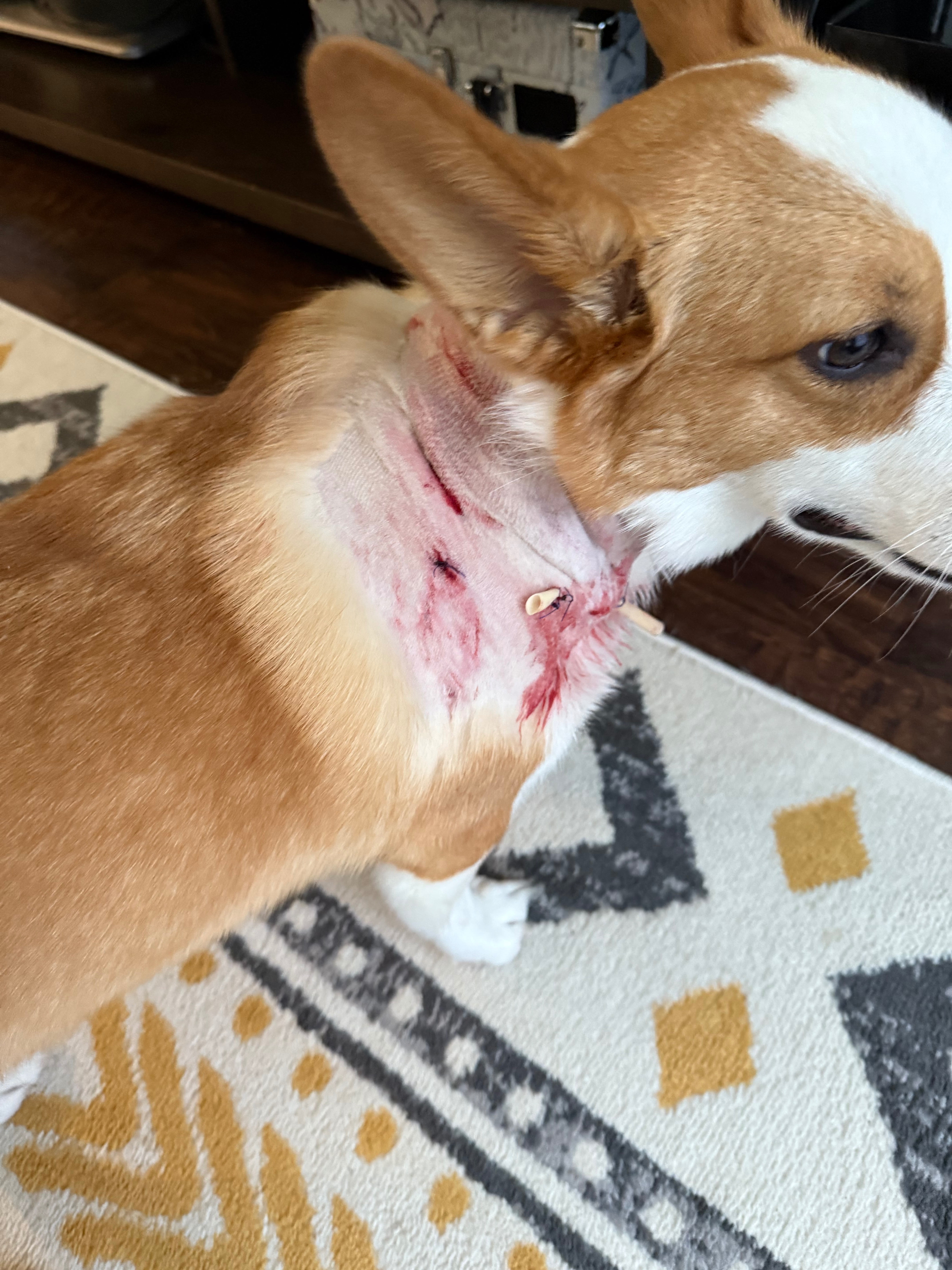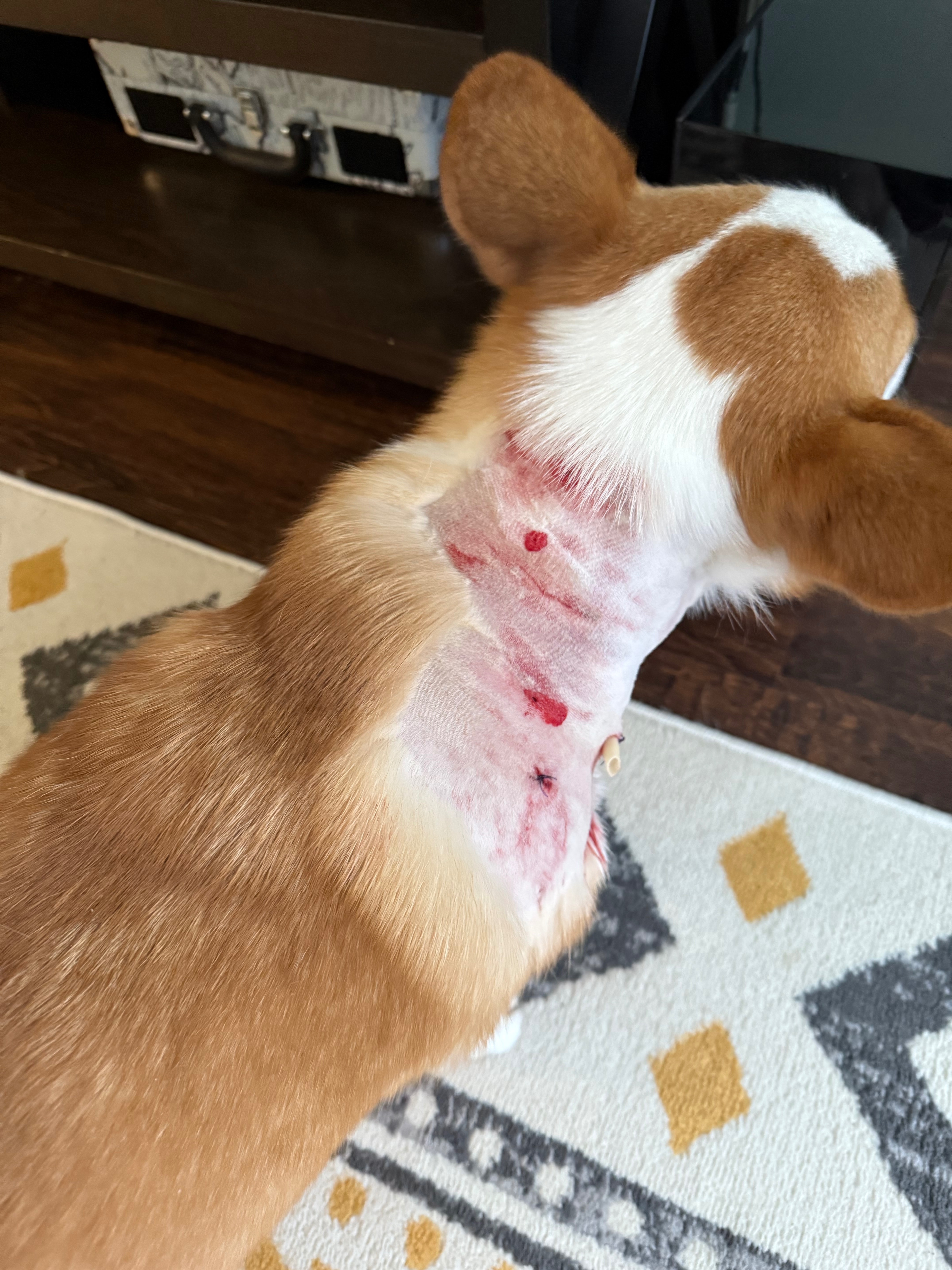 Scrappy is my 2-year-old corgi grand dog. He was attacked on his morning walk by 2 pit bulls that were running loose near Frisco Bridges on August 6th. My daughter fought the pits to save Scrappy, and miraculously, he survived. He required emergency surgery and currently has tubes in him. One had him by the throat, and the other had him by the hind leg. He will need a lot of follow-up care. Scrappy is the sweetest little thing, and I'm asking for help so my daughter can pay all of these medical bills so he can fully recover. Her apartment caught the attack on camera, and it's horrific to see this sweet little dog get attacked in such a vicious manner.