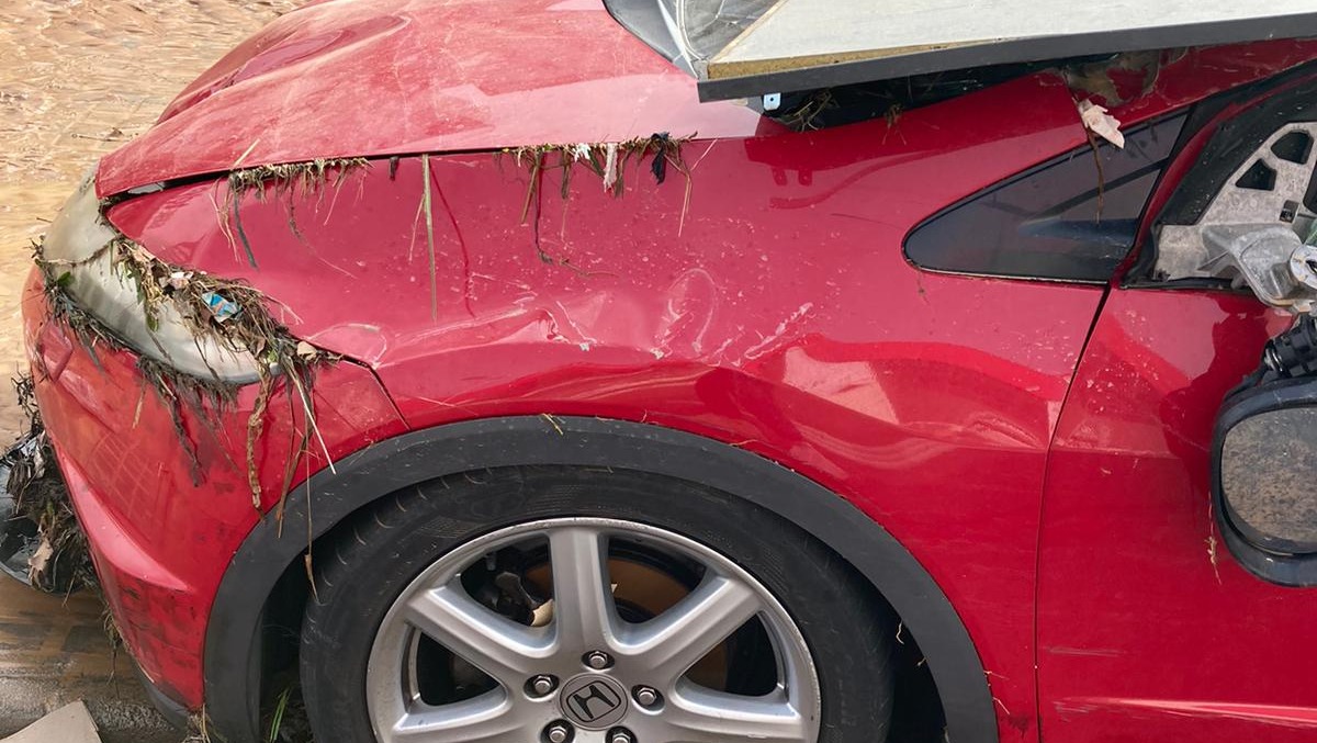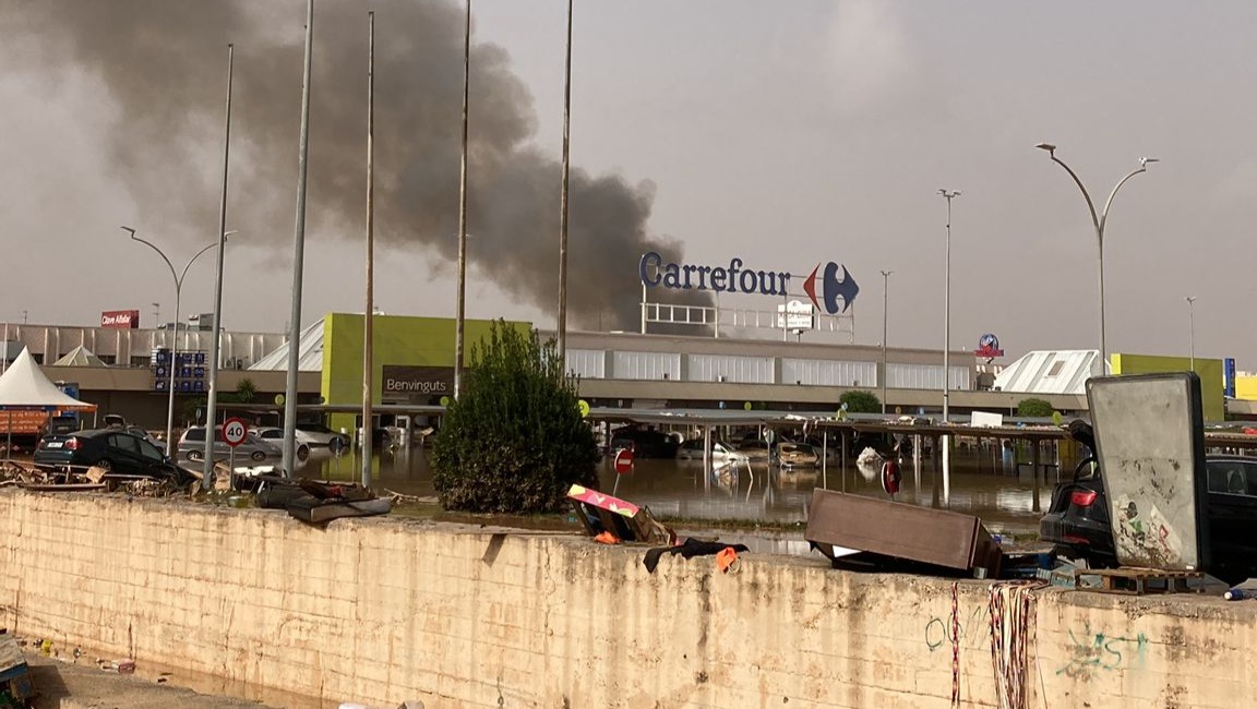 In this situation of survival with a flood that did not stop growing, we sought shelter in the nearest place as high as possible, we crossed with the water around our waists to the Media Markt of Alfafar. There we were able to spend the night with 20 other people while the water rose and rose non-stop until it reached 2 meters high. The power and running water went out and the goal was to survive. Thank goodness there was some sausage from the staff and we were all able to survive.While this was happening and we were trying to keep calm, my car was got dragged away by the flood and the furniture from the store next door completely destroyed my car.