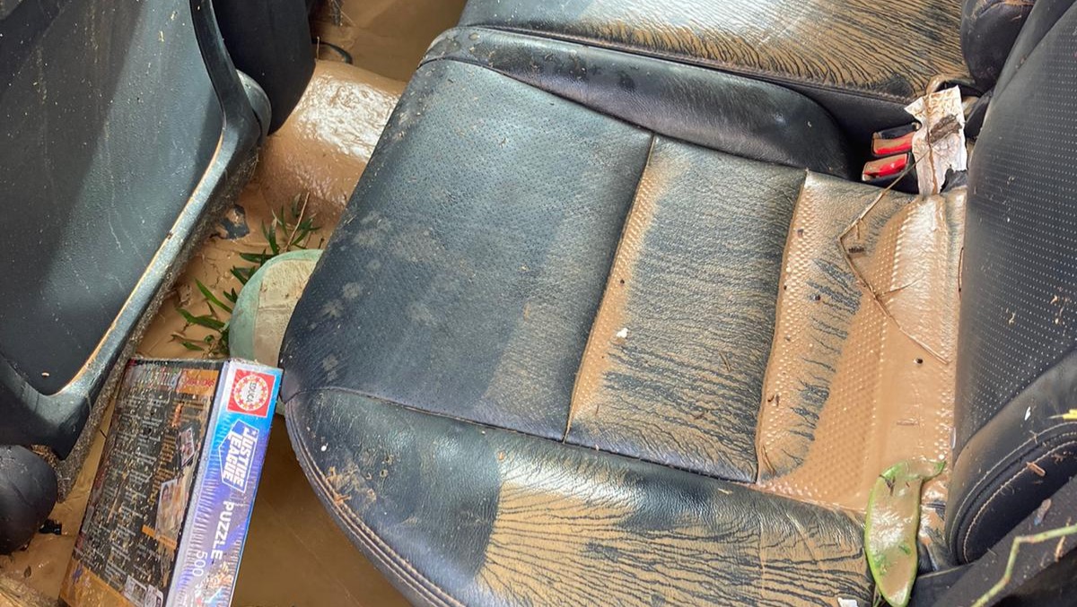 Al día siguiente, desde el tejado localicé el coche en la puerta de al lado. Estaba todo embarrado y la escena era totalmente apocalíptica. Las imágenes hablan por sí solas... A duras penas pudimos salir de allí y tuvimos que volver andando. De camino vimos saqueos, incendios, coches apilados y gente que lo había perdido todo.
