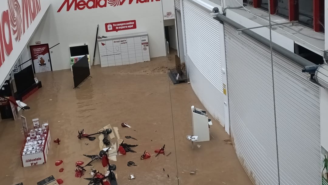 En esa situación de supervivencia con una riada que no paraba de crecer, buscamos refugio en el sitio más cercano más elevado posible, cruzamos con el agua por la cintura al Media Markt de Alfafar. Allí pudimos pasar la noche a duras penas con otras 20 personas en lo que el agua subía y subía sin parar hasta que llegó a los 2 metros de alto. Se fue la luz y el agua corriente y el objetivo fue sobrevivir. Menos mal que había algo de embutido del personal y pudimos sobrevivir todos. Mientras pasaba esto e intentábamos mantener la calma, mi coche fue arrastrado por la riada y además, los muebles de la tienda de al lado lo destrozaron por completo.
