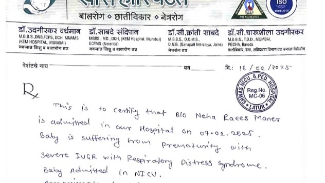 Help Br. Raees Maner, he was blessed with daughter Neha Raees Maner who is suffering from Prematurity/ Preterm. The family has done all it can to collect the total amount required for the treatment but Rs.450000 ($6000) more is required to pay for all the medical expenses.