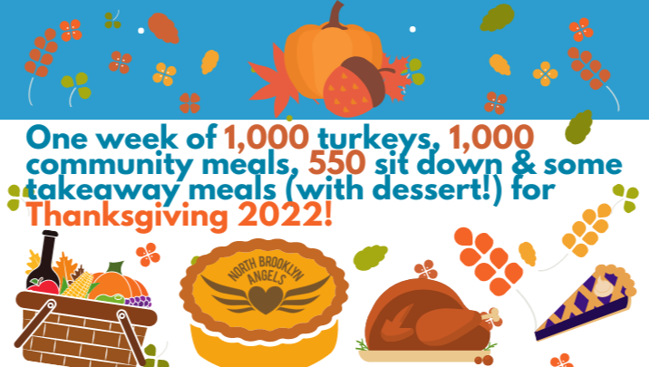 - the Angels will be taking over THREE locations in North Brooklyn to serve over 500 socially-distanced sit-down Thanksgiving Day meals to local neighbors (with pick-up options available for freshly packaged meals). We’ll be hosting lunch meals at the Ascension Church in Greenpoint, Church of Our Lady Mt Carmel in Williamsburg, and Most Holy Trinity Church in East Williamsburg.