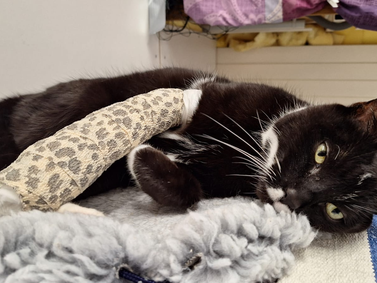 Liebe Alle! Nero kam Ende März mit hinkender Pfote nach Hause. Der Halter brachte Nero zum Tierarzt. Dort wurde ihm empfohlen, dass ein Fachtierarzt Orthopädie sich Neros Verletzung anschauen sollte. Der Besitzer war aber nicht bereit, Neros Verletzung bei einem Spezialisten abklären und behandeln zu lassen. Der Tierarzt kontaktierte uns, den Tierschutzverein Winterthur und Umgebung, ob wir einen Platz für Nero haben. Daraufhin hat der Halter eine Verzichtserklärung unterschrieben und somit sind wir der neue Halter von Nero geworden, und er kam zu uns auf unsere Katzenstation in Bertschikon. Da zu diesem Zeitpunkt noch nicht klar war, was genau mit seiner Vorderpfote los war, haben wir einen Termin bei einem Orthopäden in einer Tierklinik vereinbart. Da stellte sich heraus, dass ein Teil von Neros Mittelhandknochen gebrochen sind. Zum Glück saubere Brüche, welche keinen chirurgischen Eingriff erfordern. Dennoch eine kostspielige Behandlung, welche sich bis anhin auf CHF 795.00 beläuft. Die kommenden 5 Wochen werden weitere Beträge hinzukommen, da wir wöchentlich den Verband und die Schiene beim Spezialisten neu anlegen lassen müssen. Am Ostermontag kamen wir morgens in Neros Zimmer, und der ganze Verband und die Schiene war ab. Wir riefen bei der behandelnden Tierklinik an, um zu fragen, ob wir am Dienstag vorbeikommen können, um die Schiene und einen neuen Verband anlegen zu lassen. Sie meinten, wir sollen sofort kommen, da wir nicht bis zum anderen Tag warten können. Die Feiertagstaxe alleine belief sich auf CHF 235.00, ohne Verbandswechsel.