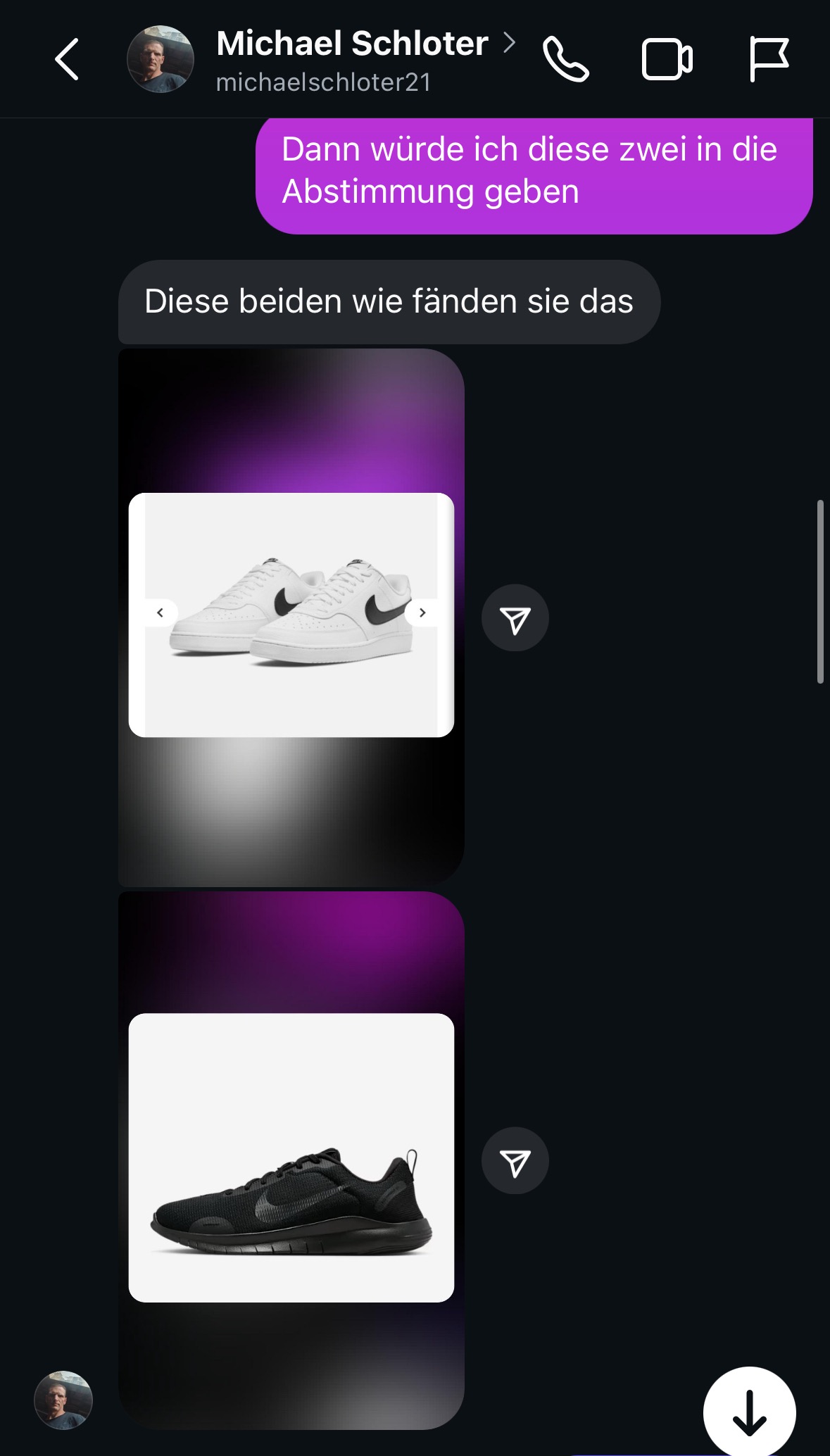 Als dies geschehen ist, fingen wir an passende Modelle auszusuchen und diese dann in eine weitere Abstimmung zu geben. Mir war es wichtig, dass meine Community entscheiden kann, welcher Schuh es werden soll, da schließlich sie es ist, welche ihn letzten Endes finanzieren würde. Herr Schloter war damit einverstanden.