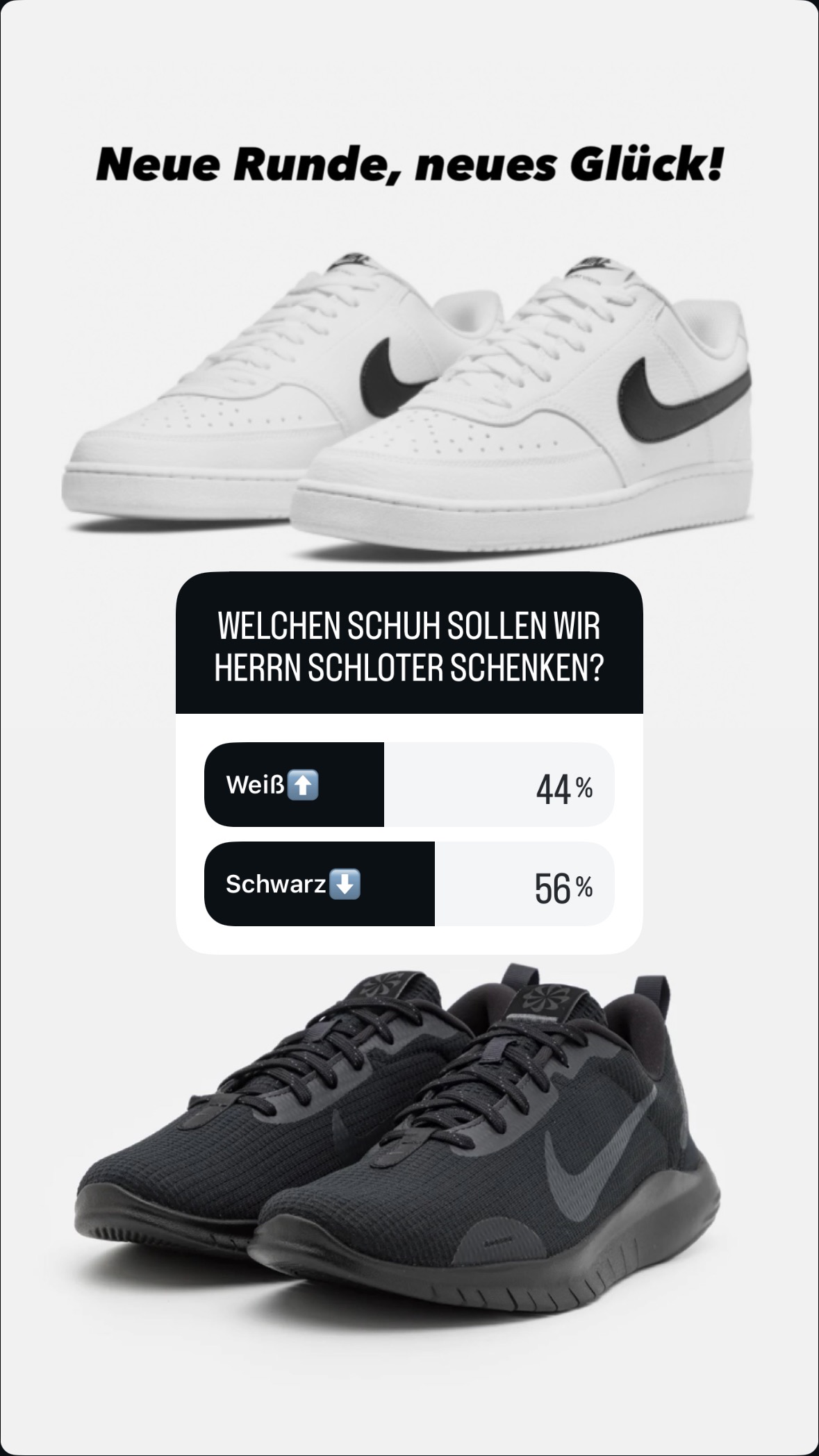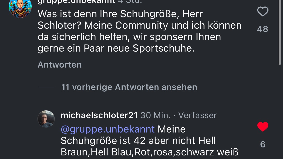 Da sich mein Content um Ihn dreht, kam mir die Idee, dass ich mit meiner Community versuchen könnte, Herrn Schloter neue Sportschuhe zu besorgen.