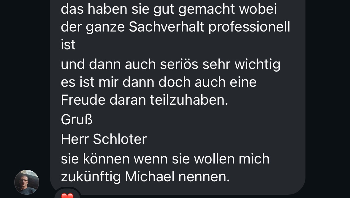 Ich bat Herrn Schloter, mir seine Schuhgröße mitzuteilen und sich privat bei mir zu melden, um alles weitere besprechen zu können.