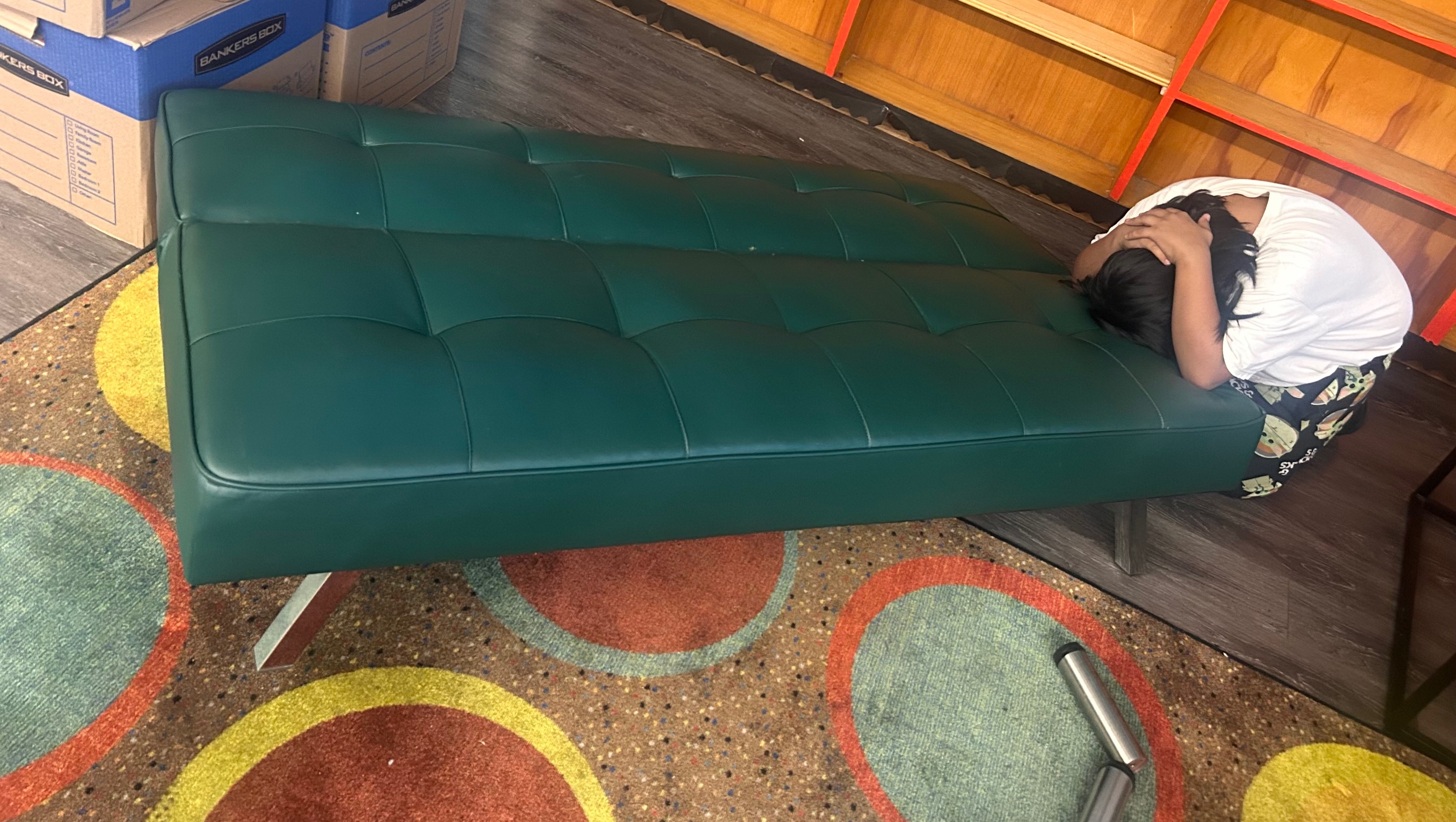 Hey folks, my couch that I’ve had for six years in the library broke and I was hoping that y’all would donate so I could get a new one. Educators receive extremely limited funds and Library grants do not often cover furniture. All three couches in my library have been purchased with my own money, but if you could find it in your heart to donate so I could replace the green one, I would appreciate it. A lot of kids use this couch to rest and recharge! You really would be helping a population of kids that need this!
