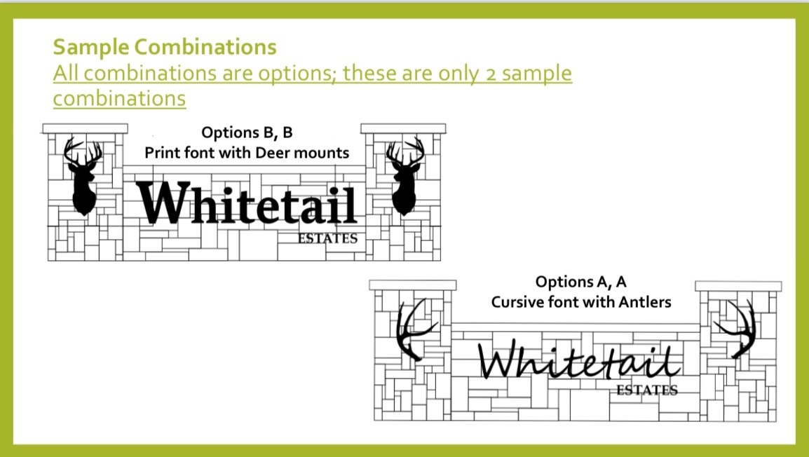 We wanted to make sure everyone had a vote and an opportunity to contribute to the funding of the sign. With over 200 homes in the Whitetail subdivision a $6,500 goal to replace the old sign should not be a problem.