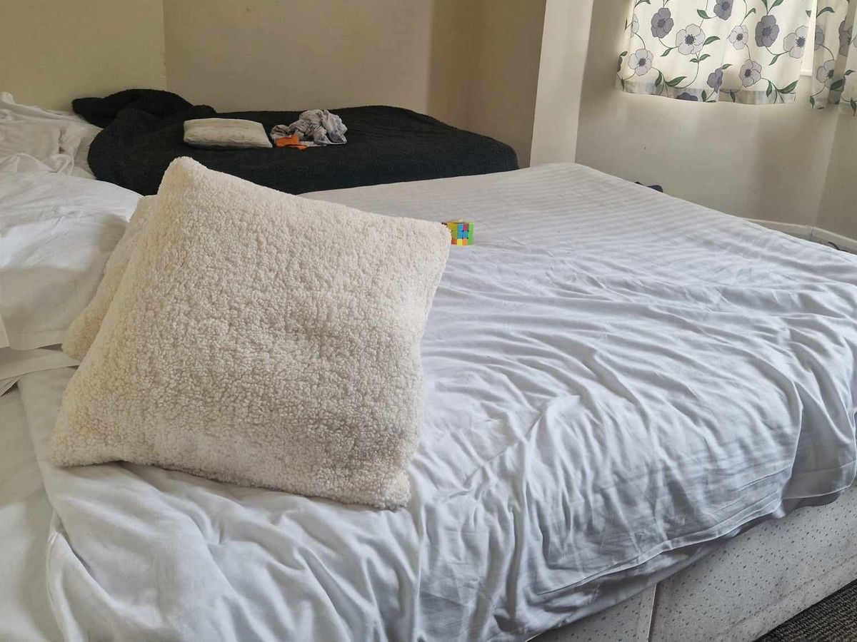 The family were placed in a safe house away from the area they had been living. They were given one small room to live and sleep in and access to communal toilets, showers and kitchen. The room itself is tiny, with space for a double bed, a single bed, a single wardrobe and a counter fridge.