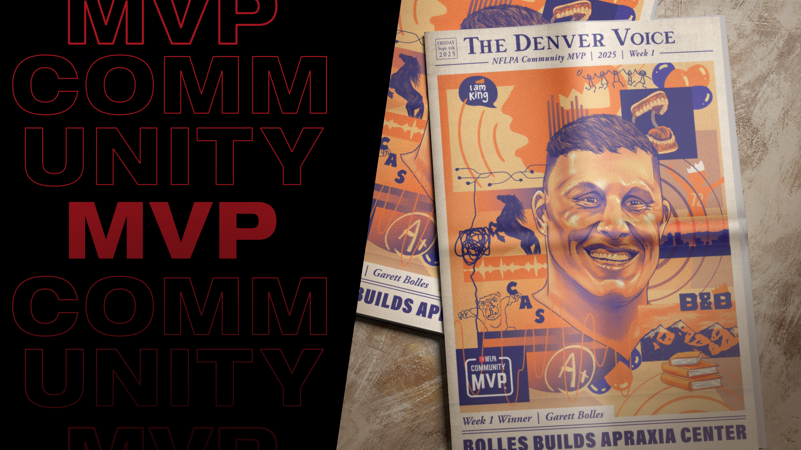 For 12 years running, the NFLPA Community MVP program has recognized the many philanthropic efforts of NFL athletes. Each week during the regular season, the NFLPA honors one player who has made a positive impact in his community. For being named the NFLPA Community MVP, the union makes a $10,000 donation to the player’s foundation or charity of choice.