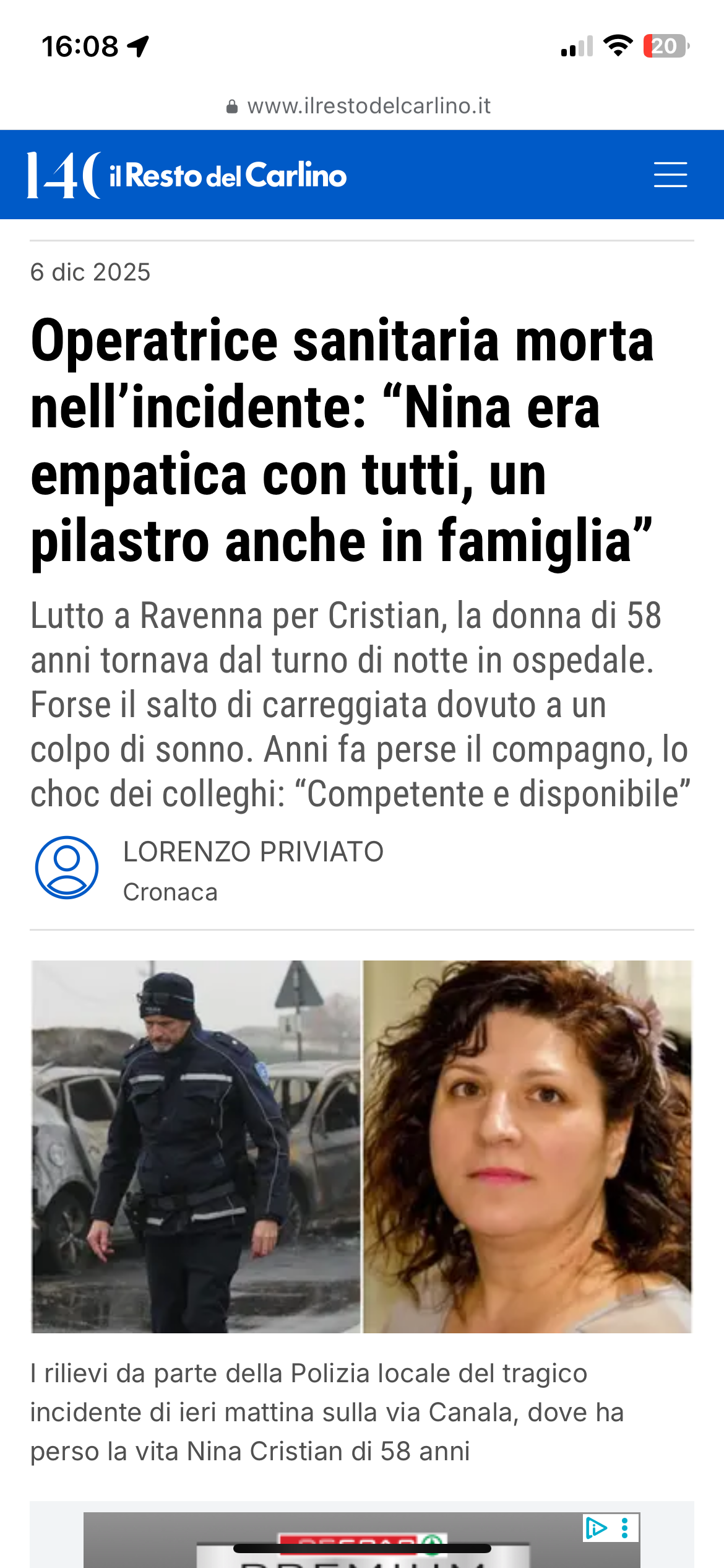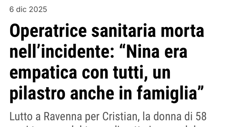 Ciao, mi chiamo Mihaela, alcuni mi conoscono altri no. Sono la figlia di Nina Cristian l’OSS che rientrando a casa dopo una lunga notte di lavoro al pronto soccorso il 5 dicembre 2025 a Ravenna ha perso la vita tra le lamiere della sua macchina sulla Via Canala, una via che faceva tutti i giorni, anche più di una volta al giorno…