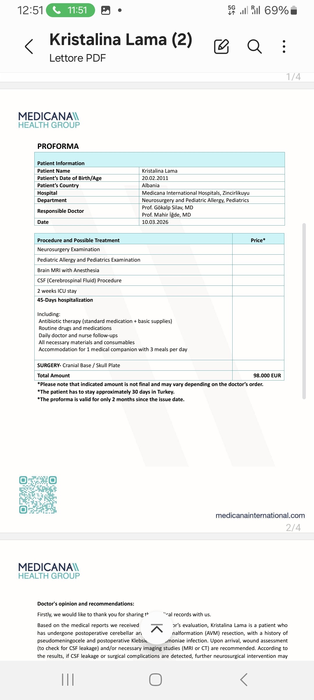 Mjekët kanë thënë që për t’u shëruar kam nevojë të vazhdoj trajtimin në Turqi, në një spital të specializuar. Ky trajtim është shumë i kushtueshëm dhe prindërit e mi, edhe pse po bëjnë gjithçka, nuk kanë mundësi ta përballojnë.