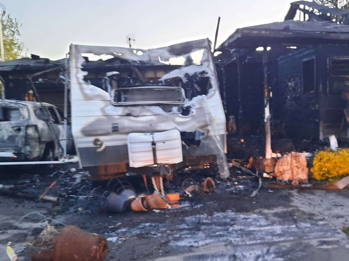 Upon arrival, firefighters and law enforcement discovered a camp trailer, vehicles, and a single-story structure fully engulfed in flames. The occupants had been awoken by a neighbor and were able to escape the fire without injury.