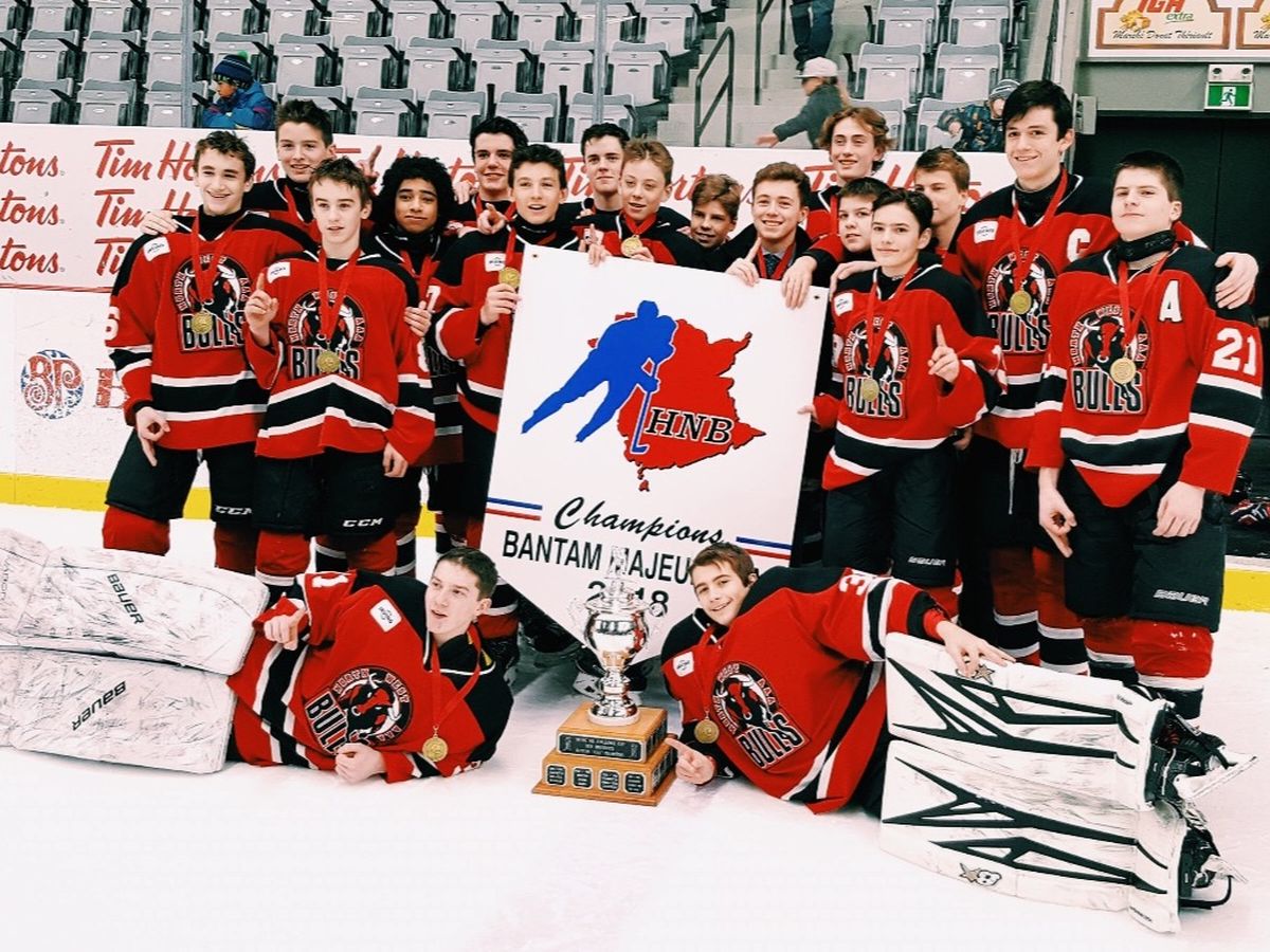 L’équipe de hockey Les Bulls du Nord-Ouest a bouleversé le monde du hockey de la province du Nouveau-Brunswick le 25 mars dernier en remportant les honneurs du Championnat Provincial Bantam Majeur AAA. Maintenant, ces jeunes hockeyeurs se préparent pour leur départ vers St-John’s Terre-Neuve où ils compétitionneront au Championnat de l’Atlantique Bantam AAA du 4 au 8 avril 2018.