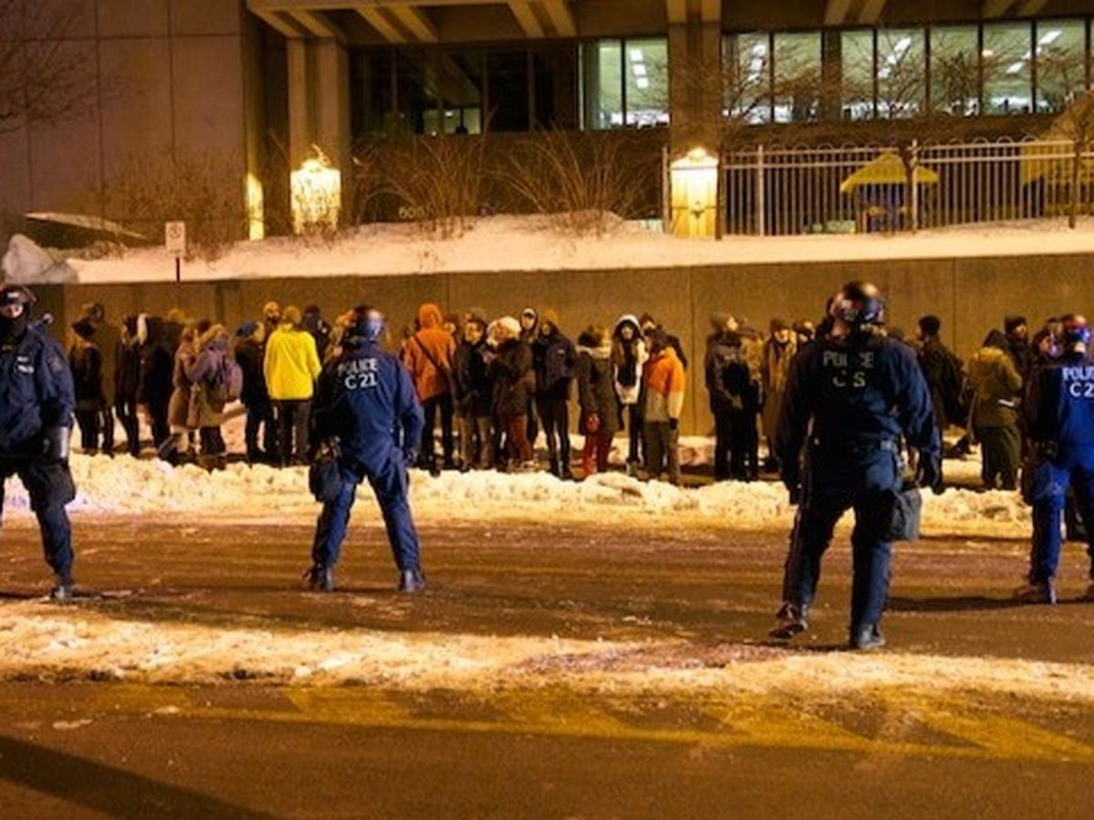 C’est en vertu de ce règlement que le service de police de la Ville de Québec nous a arrêtéEs et nous a remis des constats d’infraction de 220$. Notre groupe d’arrêtéEs, solidaires, s’est formé à même les souricières dans lesquelles nous nous sommes retrouvéEs contre notre gré, dans un froid polaire.