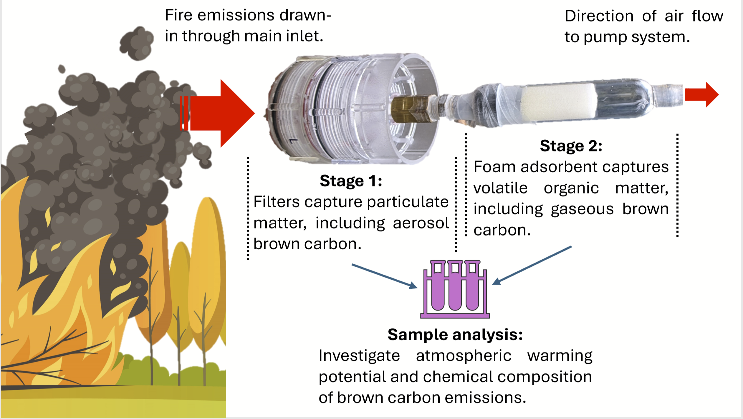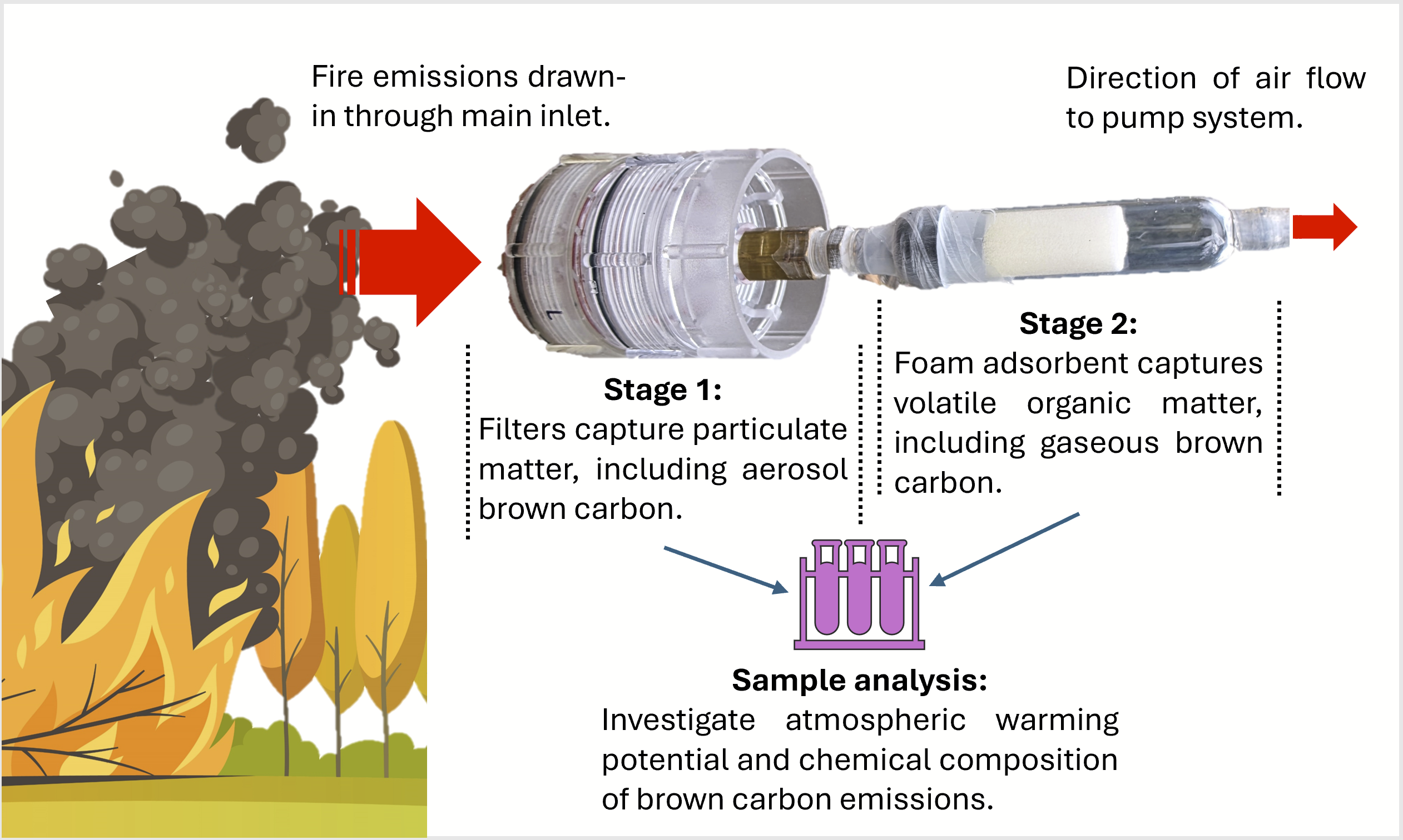 Climate change is contributing to the intensification of wildfire activity on a global scale. These fires result in the destructive loss of ecosystems and communities, while smoke generated from uncontrolled burning contains gases and particulate matter that are harmful to human health and the natural environment. Wildfire smoke is also rich with a unique category of organic compounds known as atmospheric brown carbon (BrC).