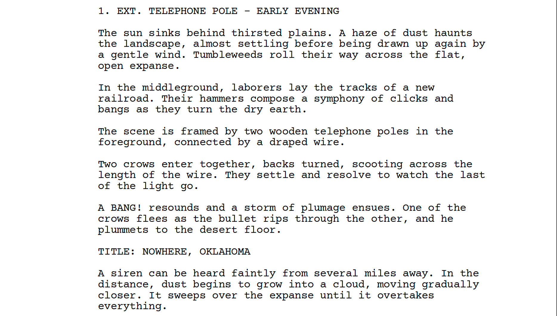 In the harsh dust bowl landscapes of rural Oklahoma, a young boy yearns to join the rag-tag group of kids who make a living hunting crows for his father, the local butcher. However, as the vilified birds begin to guide him to new understandings about his family, he and his newfound friends embark on a journey to discover their secrets.