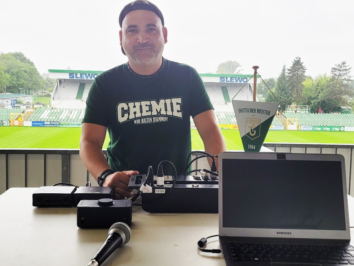 Niebe ist nicht nur freiberuflicher DJ, sondern auch ehrenamtlicher Techniker bei der BSG Chemie Leipzig. Dank seines Einsatzes kann unser Stadionsprecher bei jedem Heimspiel die Fans begrüßen, für Stimmung sorgen – und natürlich „die Frage aller Fragen“ stellen.